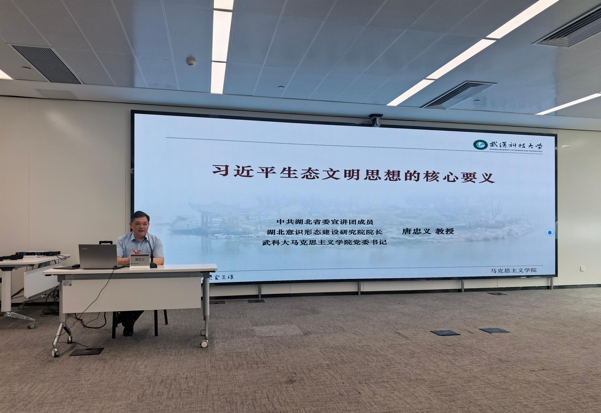 唐忠义作《习近平生态文明思想的核心要义》专题辅导报告,系统阐释了习近平生态文明思想的科学内涵、时代价值和实践要求,指明了生态文明建设的方向和路径。街道党工委的领导班子以及村社区党组织书记、年轻干部们在台下听得津津有味。年轻干部小李直呼:“你们看,我们产业园的绿化道像不像古琴的琴弦?生态就是发展的‘定音弦’!”