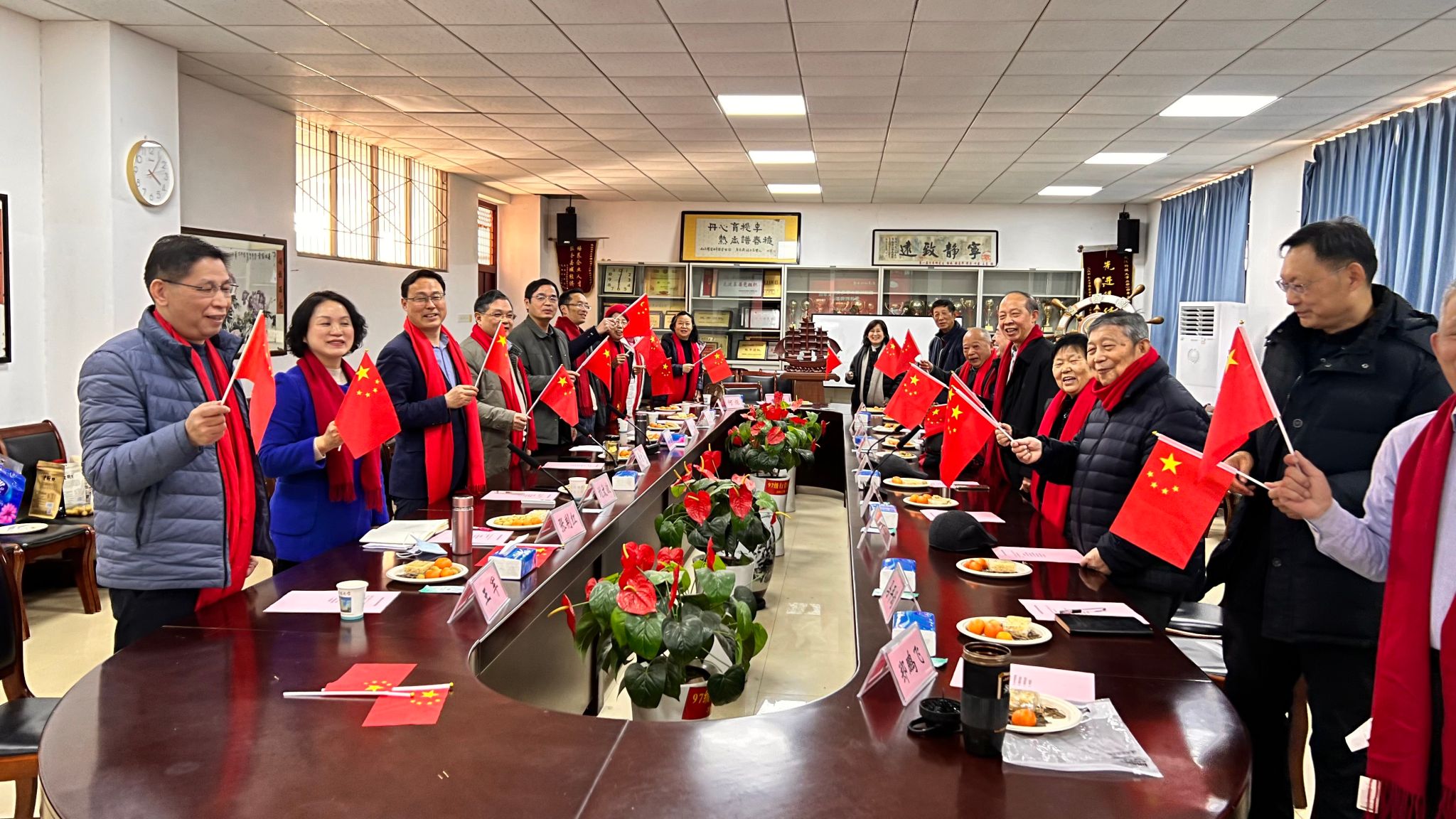 本网讯(通讯员刘勇)1月15日下午,学院在41401会议室隆重举办荣休教师茶话会。党委书记唐忠义、院长刘文波、副院长刘勇、副院长张荆红以及15名荣休教师参加茶话会,会议由刘勇主持。参加会议的荣休教师有:刘华才、杨杰、孙莹、丁惠希、顾志明、李锐锋、马平均、郑鹏飞、王军、严丽秀、张重衍、郭继海、汪忠杰、李蓓、何钜等。在一曲《五星红旗迎风飘扬》的歌声中,茶话会在一片温馨融洽的氛围中拉开帷幕。