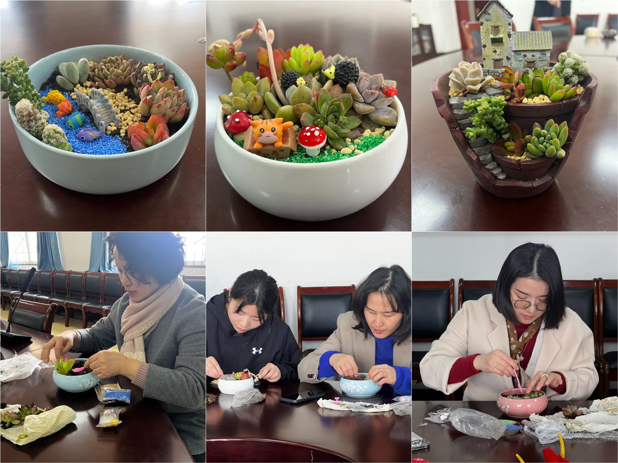 本网讯(通讯员周怡君)为庆祝第115个三八国际妇女节,丰富和活跃女教职工精神文化生活,3月6日,学院在41401会议室举办“多肉溢彩 共绽芳华”多肉微景观DIY主题活动,三十余名女教职工在绿意盎然的手作时光中感受春日浪漫。