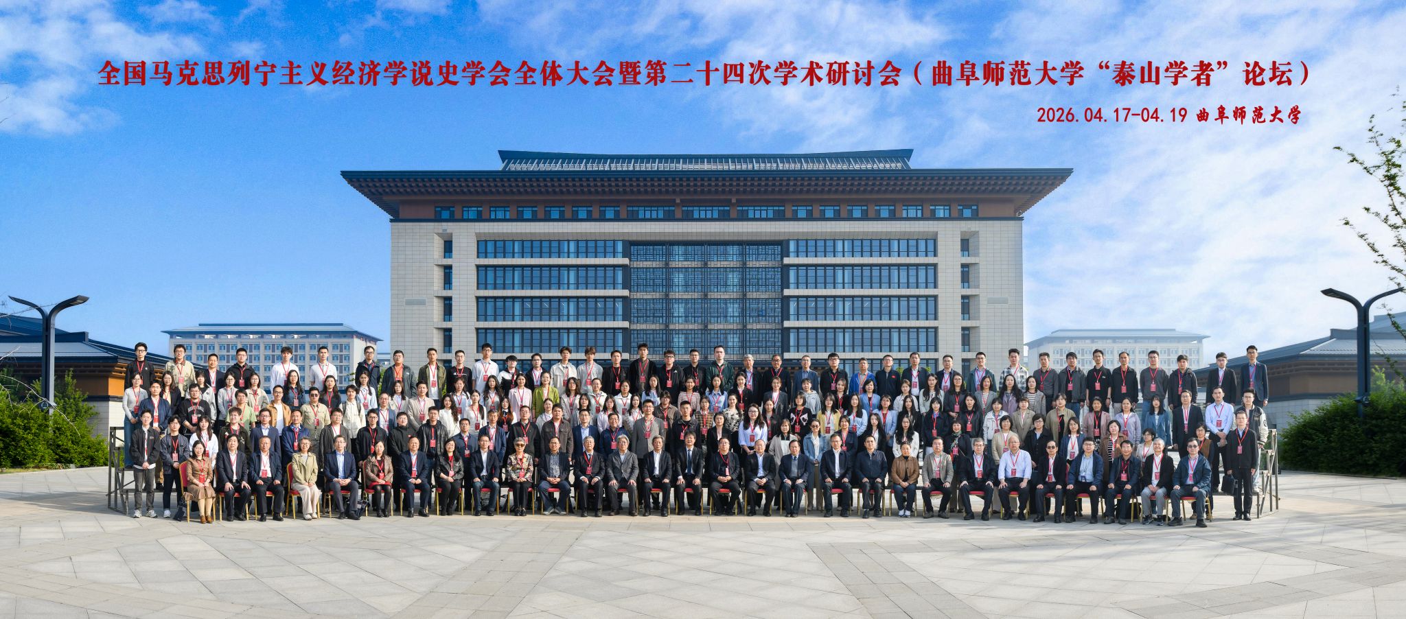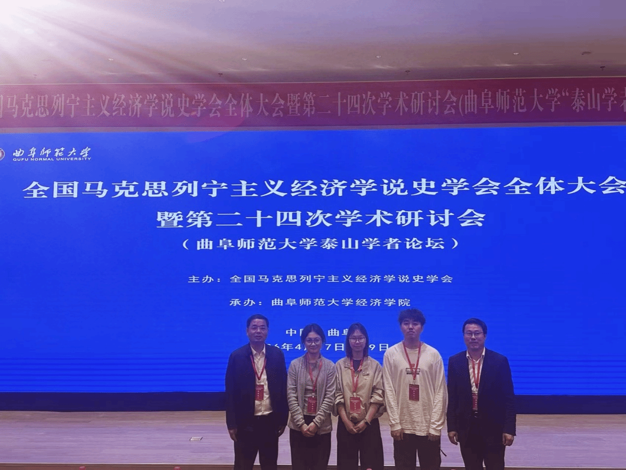 本网讯(通讯员 金雨婷)4月17日至19日,全国马克思列宁主义经济学说史学会第二十四次学术研讨会暨全体大会在山东曲阜隆重召开。本次会议由全国马克思列宁主义经济学说史学会主办、曲阜师范大学经济学院承办,主题为“‘十五五’规划与马克思主义政治经济学新发展”。我院院长刘文波教授、副院长刘勇教授以及研究生金雨婷、沈佳颖、张瑞祺应邀参会。
