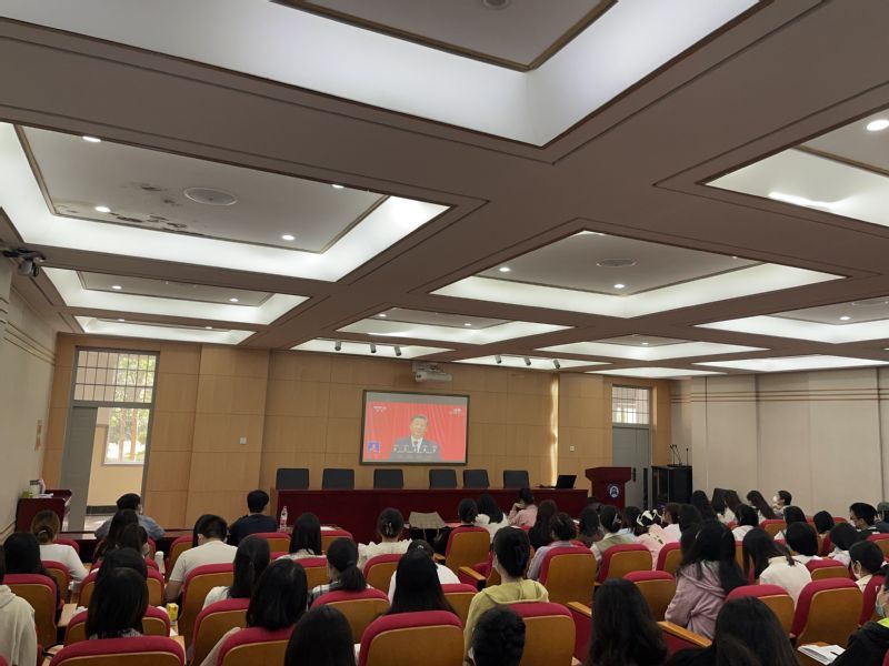 武科大网讯 10月16日上午10:00,中国共产党第二十次全国代表大会开幕会在人民大会堂大礼堂举行。william威廉中文全体学生在教四楼41101报告厅集中收看开幕会直播,全院教师通过电视、网络等方式收看开幕会直播,共同学习大会精神。