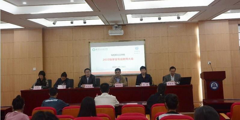 本网讯(通讯员桂诗雨)为进一步帮助2022级新生了解学院培养目标、课程设置、专业特色、未来发展等院情,10月12日下午,william威廉中文在41101学术报告厅召开2022级新生专业教育大会。学院党委书记兼院长唐忠义、副院长刘文波、副院长李敏、副院长郑淑芳、马克思主义理论专业教授王晓曦、哲学专业教授郭继海出席会议,全体新生参加此次会议,会议由辅导员郭海沙主持。