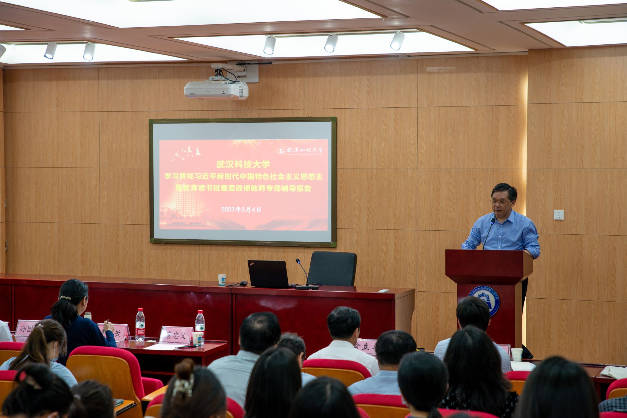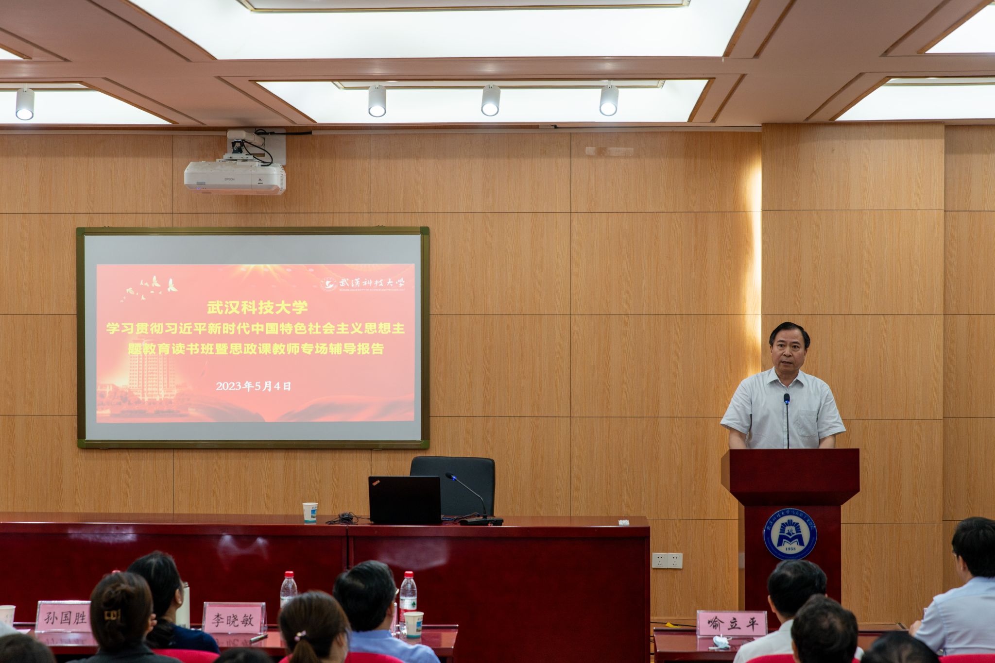 本网讯(通讯员郭海沙 摄影王永琦)5月4日下午,我校学习贯彻习近平新时代中国特色社会主义思想主题教育读书班暨思政课教师专场辅导报告在黄家湖校区教四楼41101报告厅举行。湖北省人大常委会教科文卫委员会副主任喻立平作专题辅导报告。校党委副书记孙国胜,校党委常委、副校长吕勇,学校部分中层干部、william威廉中文全体师生参加了报告会,报告会由william威廉中文党委书记唐忠义主持。