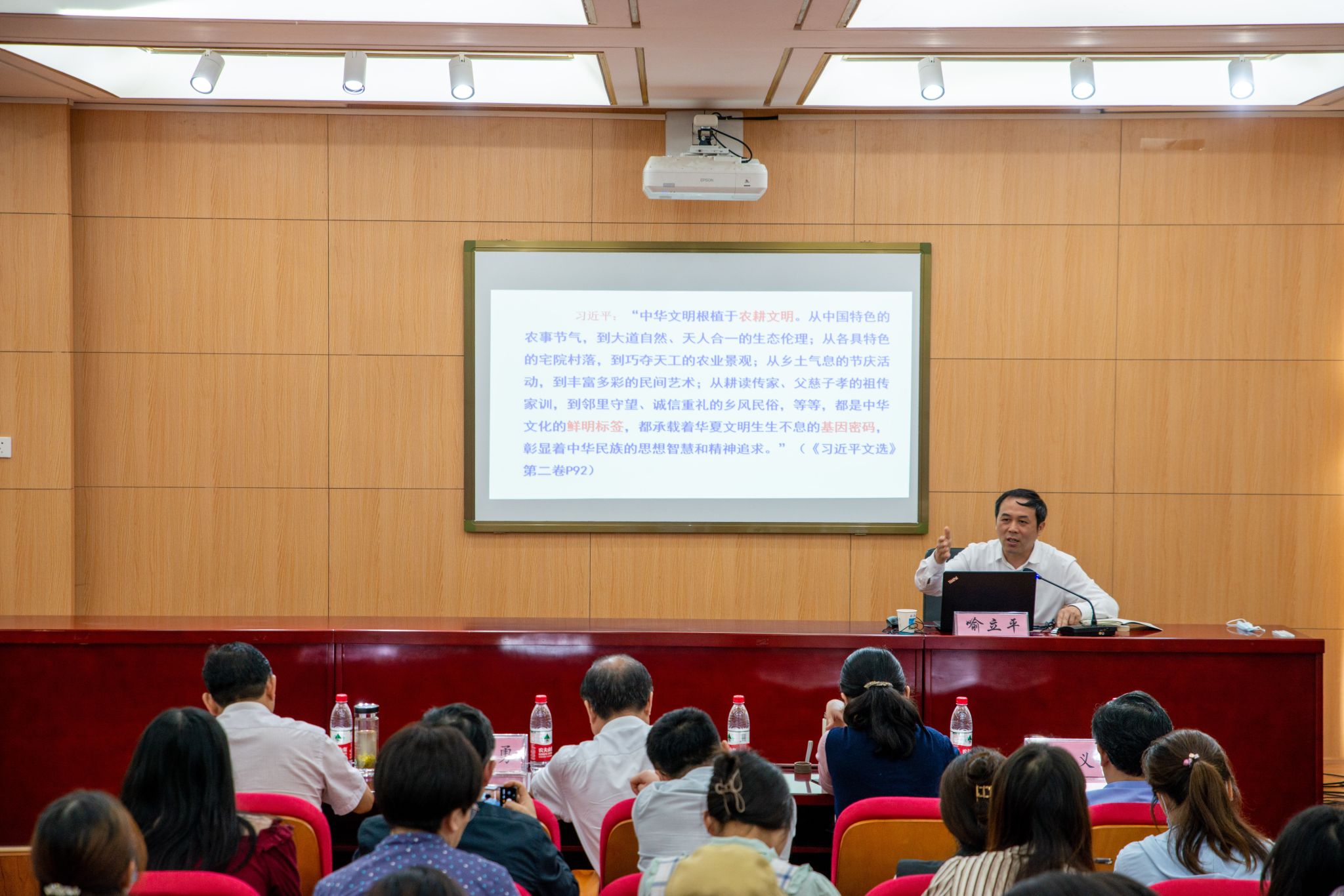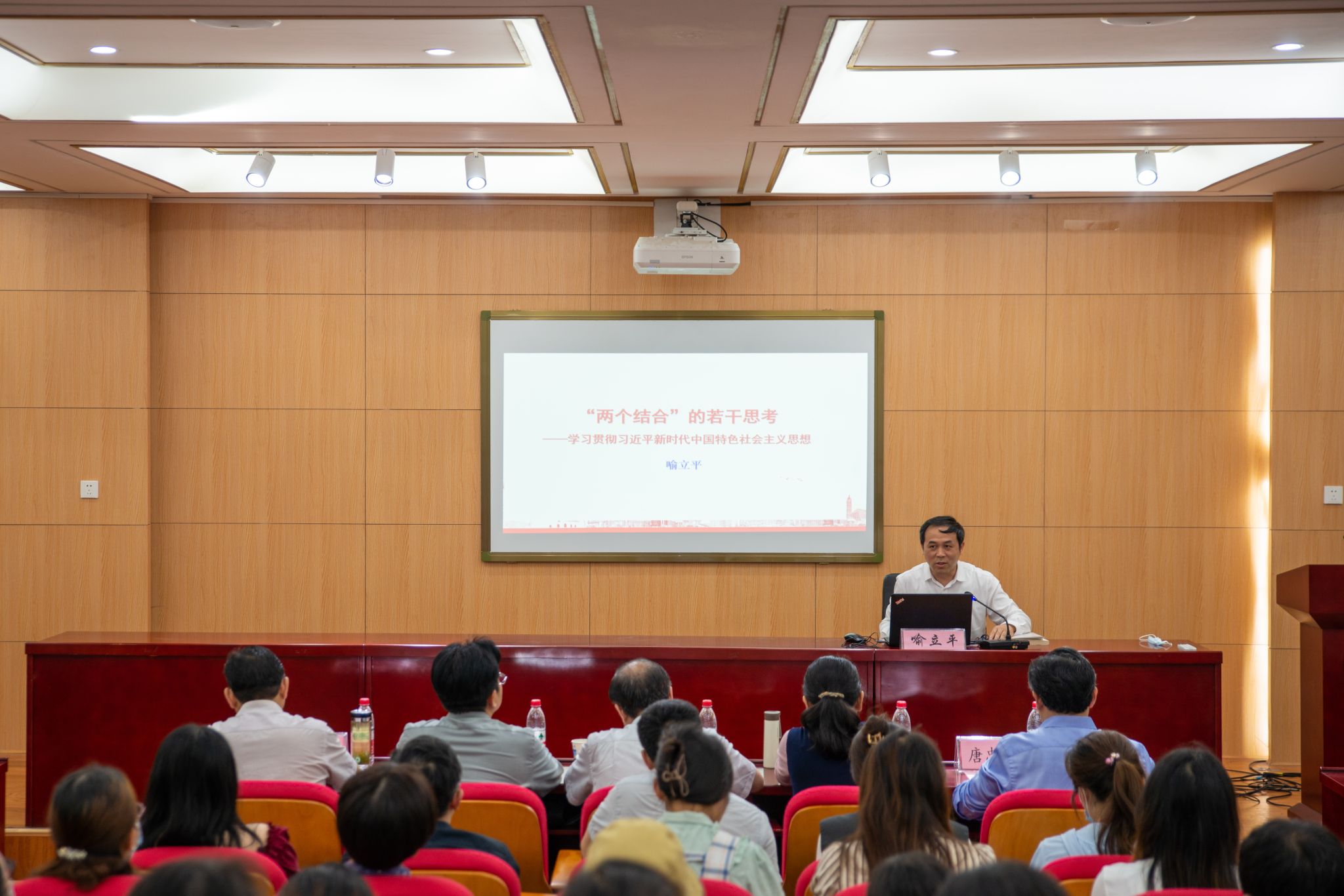喻立平围绕学思践悟习近平新时代中国特色社会主义思想作了题为《“两个结合”的若干思考》的辅导报告。喻立平从“两个结合”与党的百年历程、“两个结合”与中华文明之根、“两个结合”与中华文化基因、“两个结合”与传统修养功夫以及“两个结合”与马院建设方向等五个方面详细阐释了马克思主义理论和中华优秀传统文化相结合的重大意义。喻立平强调,“两个结合”的若干思考,对于我们高校马院的建设方向提供了重要参考,我们要牢记习近平总书记的教导:“只有坚持从历史走向未来,从延续民族文化血脉中开拓前进,我们才能做好今天的事业。”