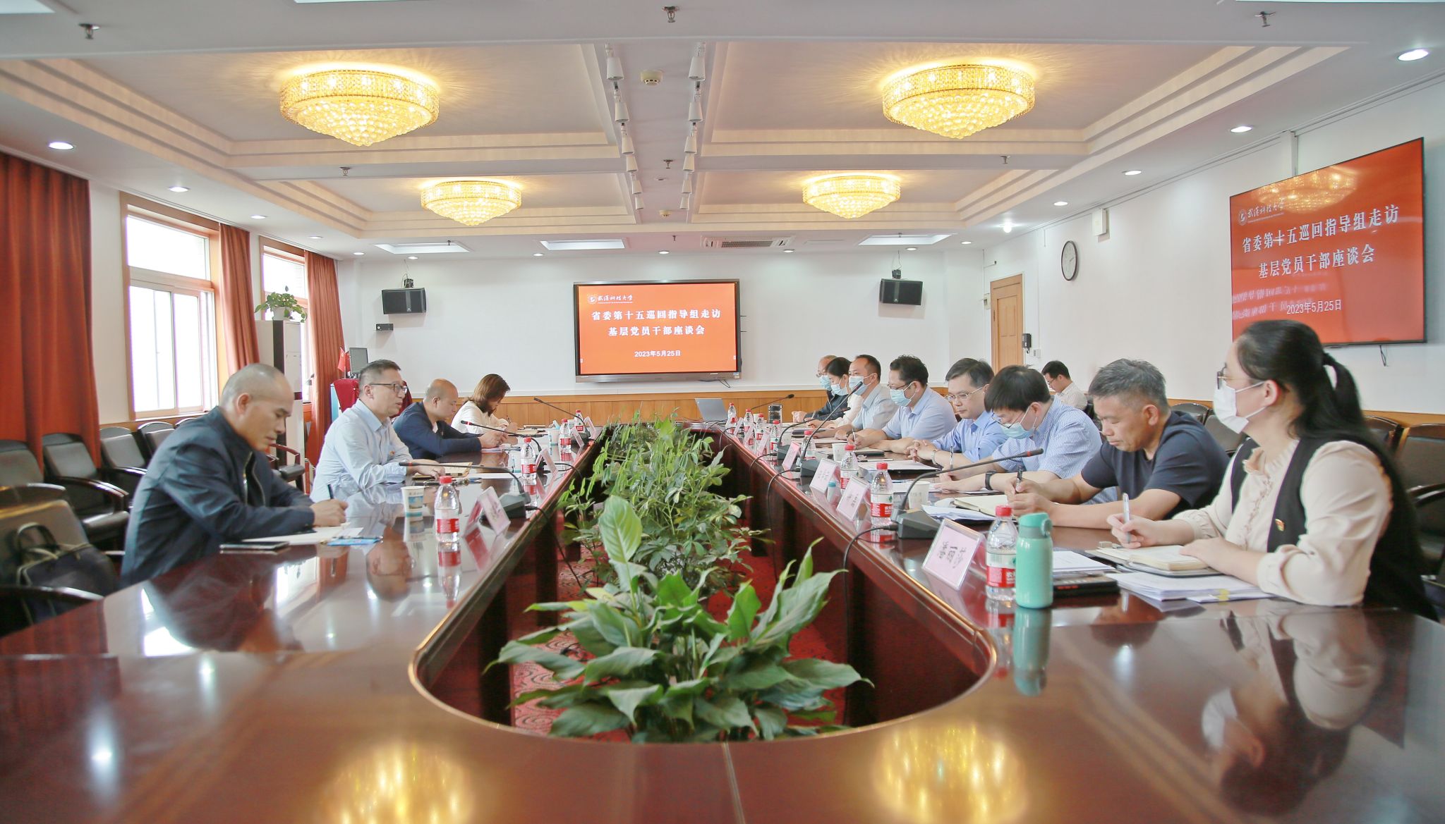 5月25日下午,指导组主持召开基层党员干部座谈。座谈会上,指导组与学校基层党员领导干部进行了交流,了解学校基层党组织开展主题教育情况;中层干部代表汇报了主题教育开展以来的学习心得体会。指导组对学校和基层党组织开展主题教育情况给予了肯定,要求学校基层单位要扎实做好理论学习、调查研究、推动发展、检视整改等各项工作任务,加强对基层党组织分类指导,注重经验总结,推动学习贯彻习近平新时代中国特色社会主义思想主题教育取得实效。