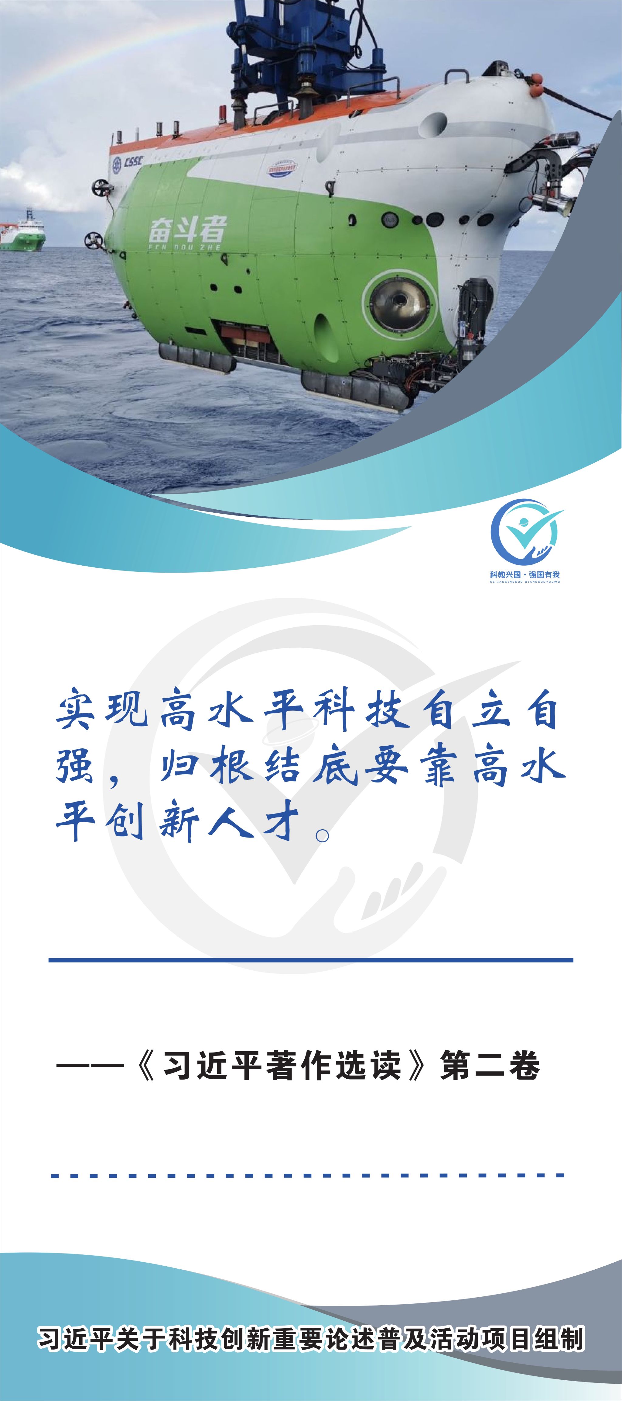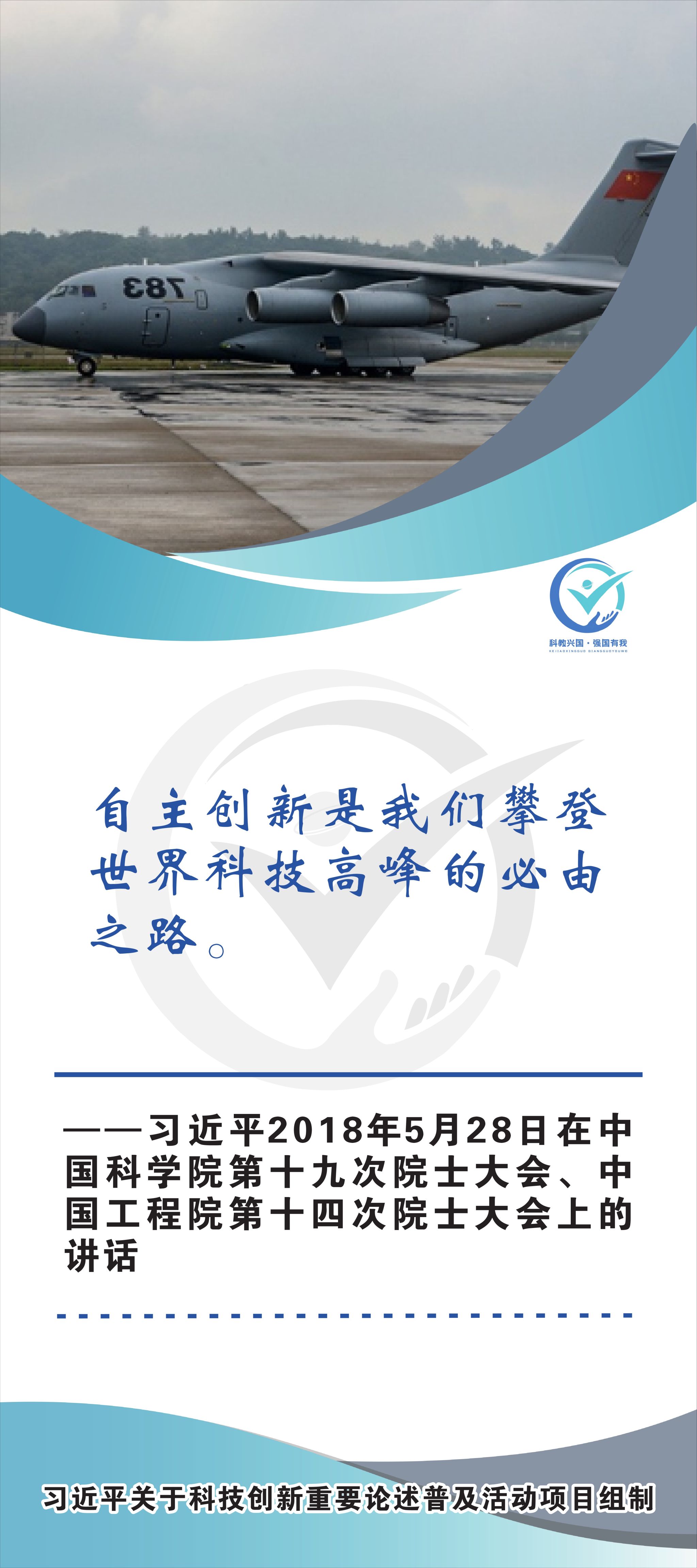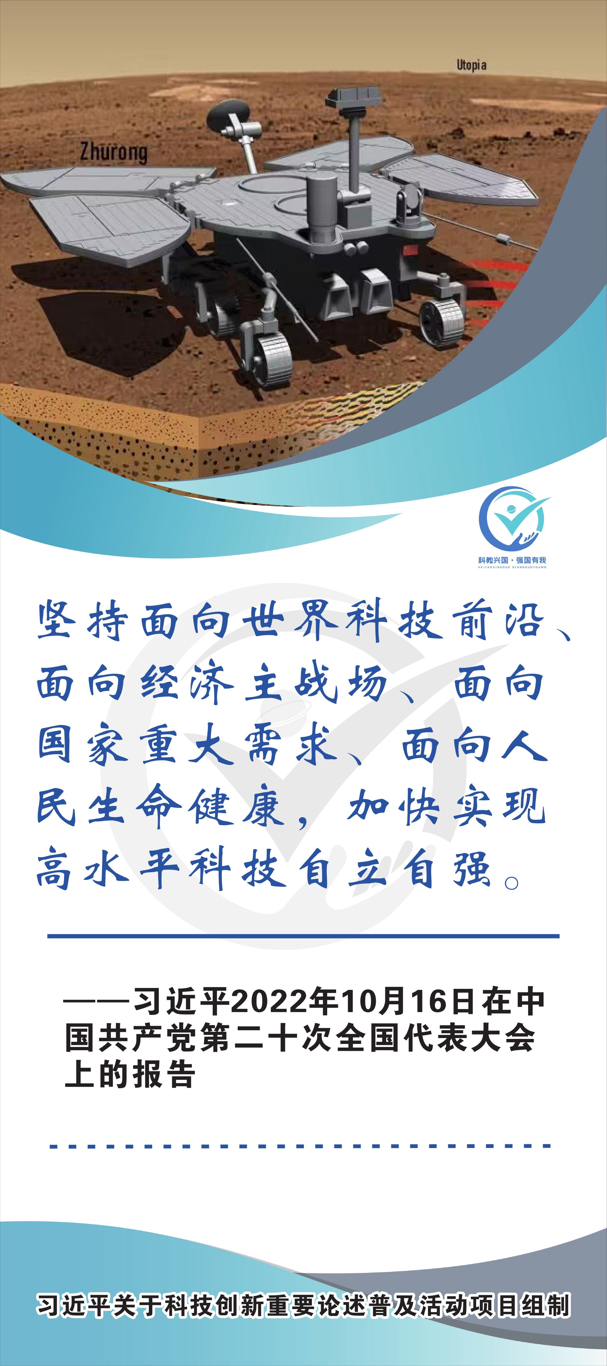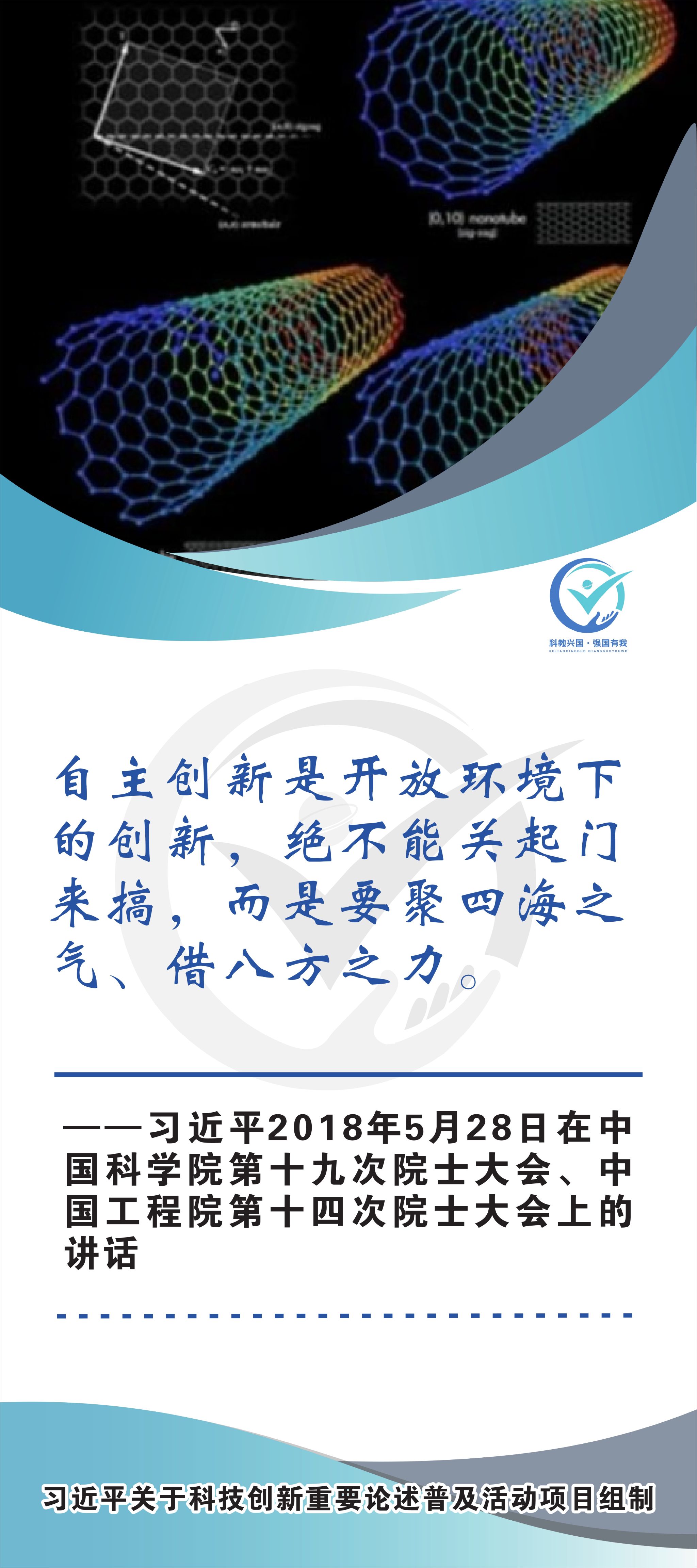 活动现场设立了30张立幅原文海报,设置原著展台,结合多媒体原声播放生动还原习近平总书记对于科技自立自强的重要论述,辅以现场宣讲,在较短时间内让参观者充分掌握本专题的核心要义和思想伟力。采取学习“习语金句”和金句问答等方式,有助于大学生把握重要讲话精髓,也有助于师生共同探索思政和科普相结合的宣教途径。外宣版块通过在学校教学楼出入口醒目位置设立打卡墙,提高昭示性,鼓励自拍互拍上网上群,扩大活动影响力,推动科技创新专题的主题教育走深走广走实,弘扬新时代科学家精神,凝聚创新创造激情和科技报国热情。