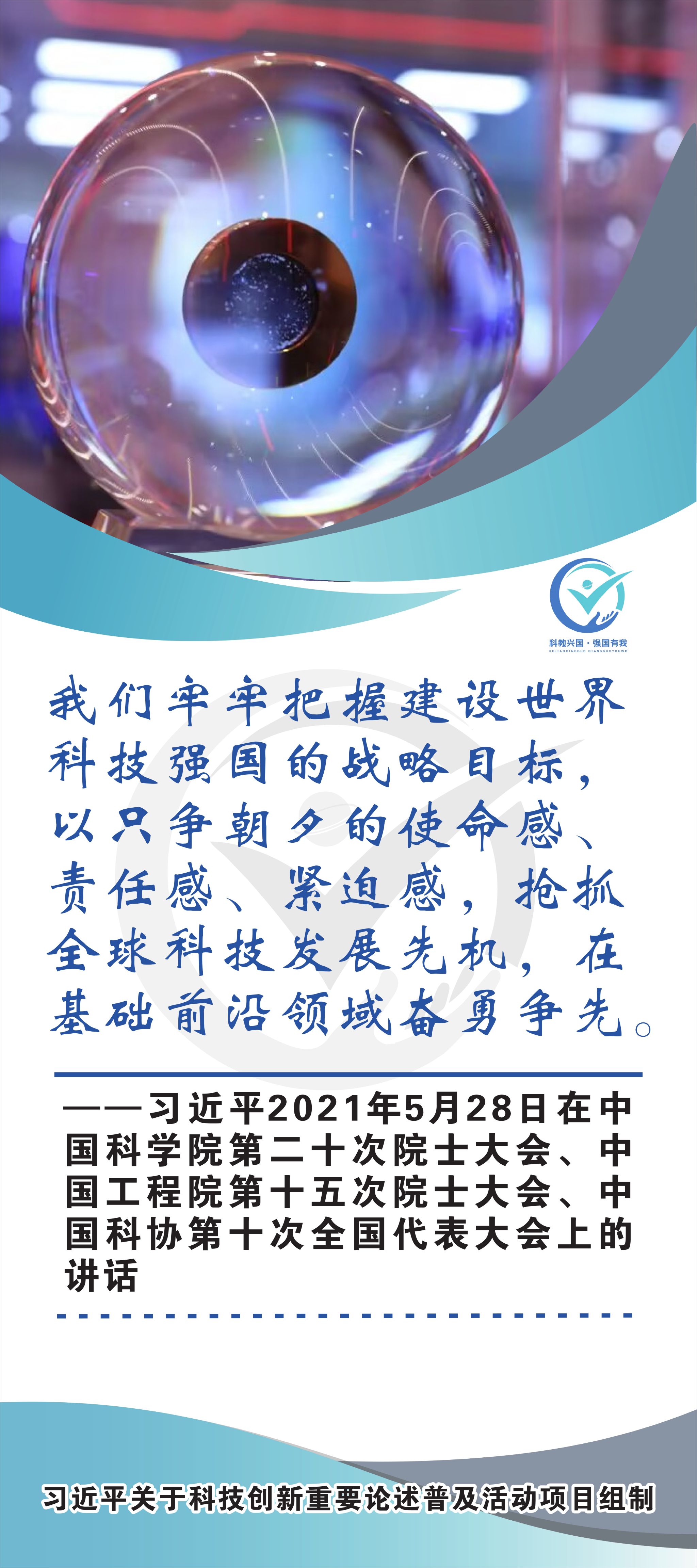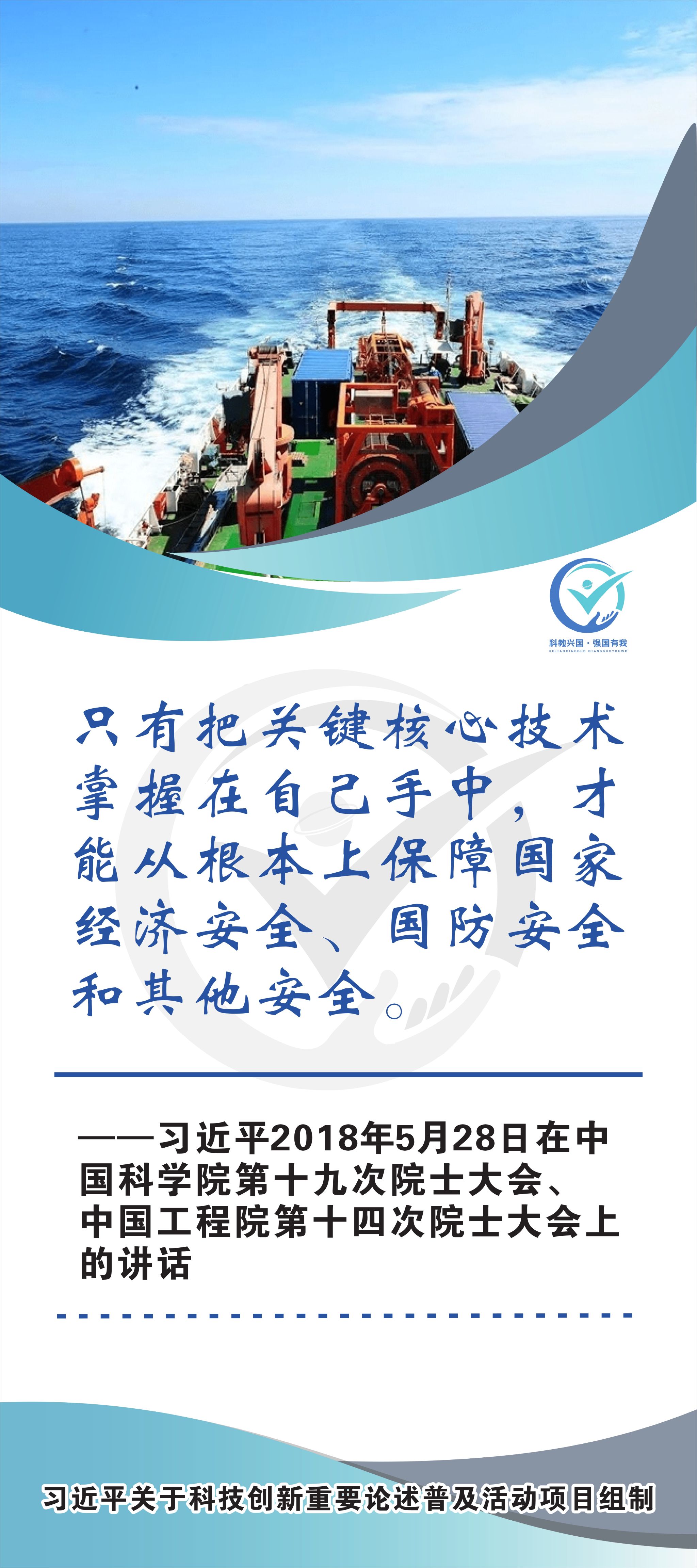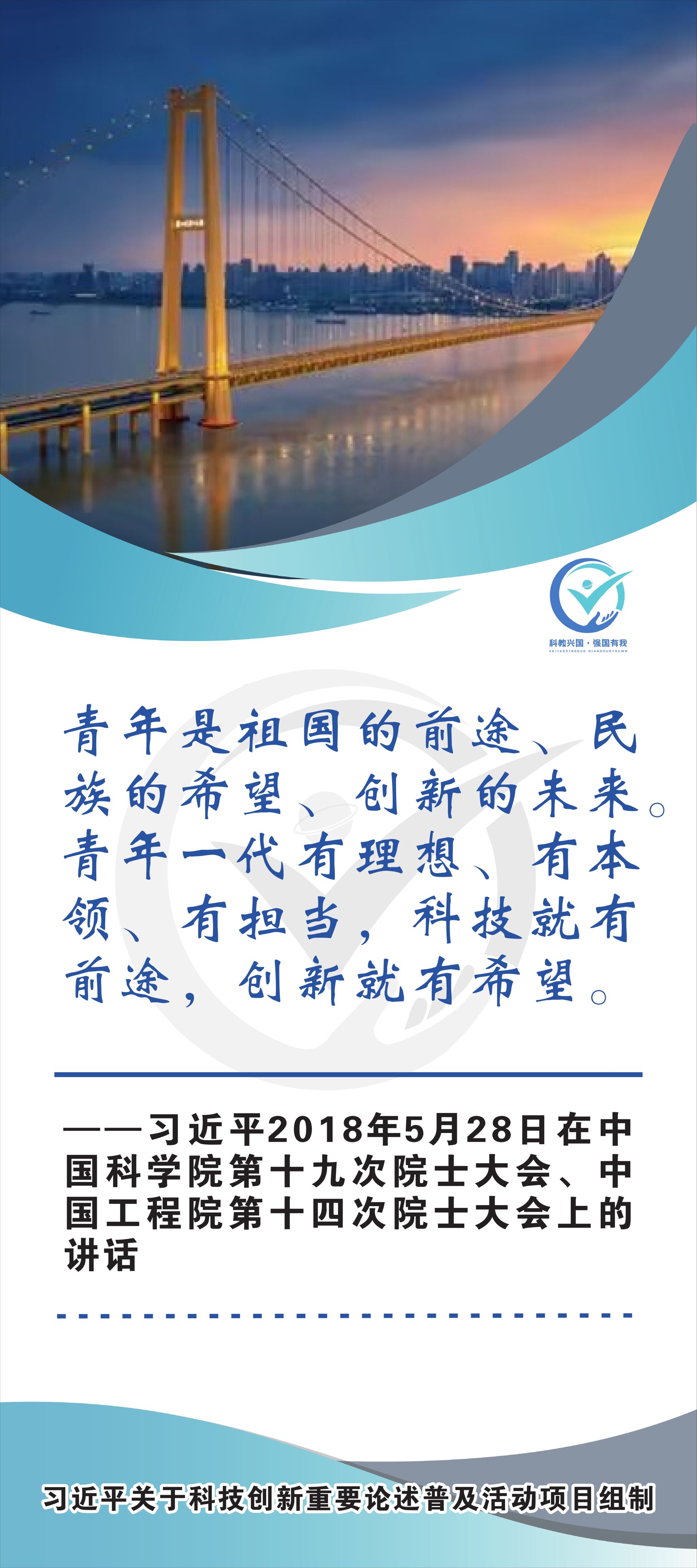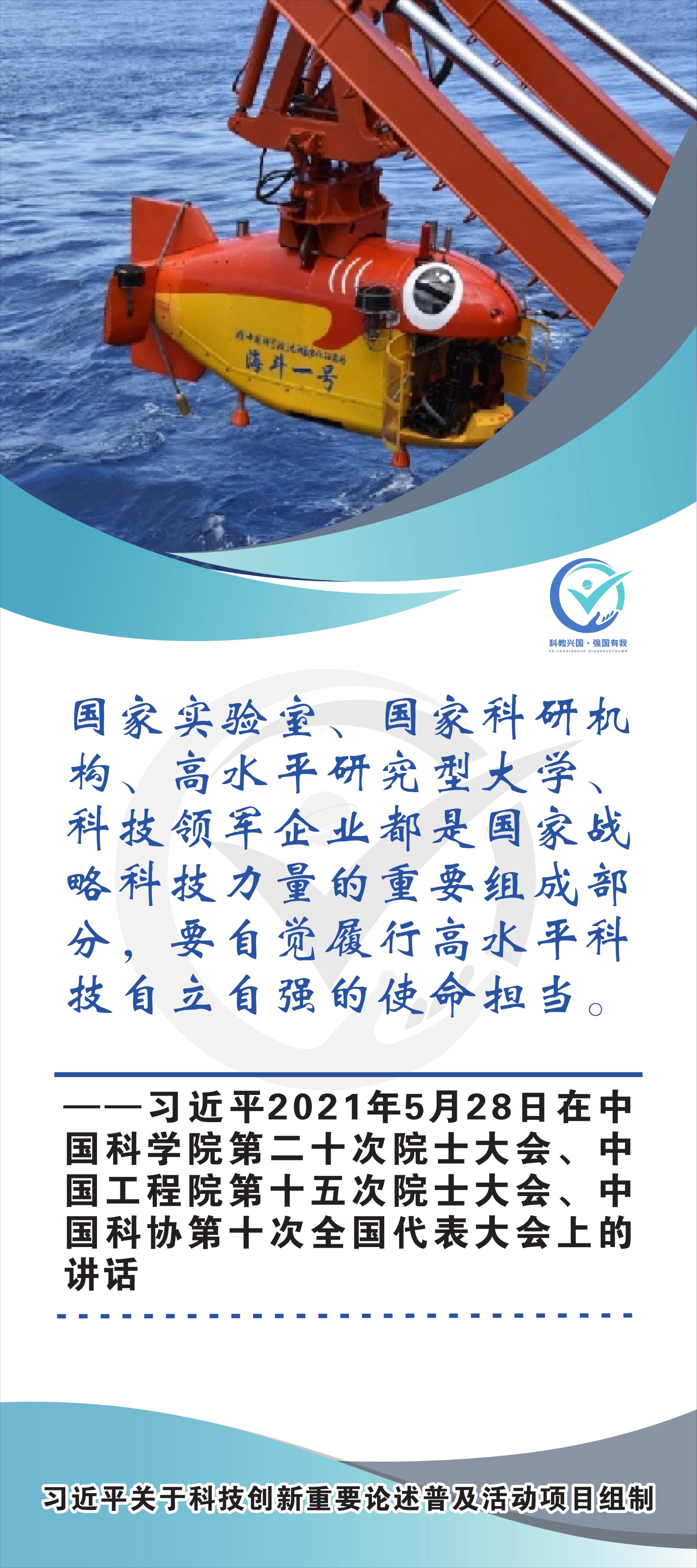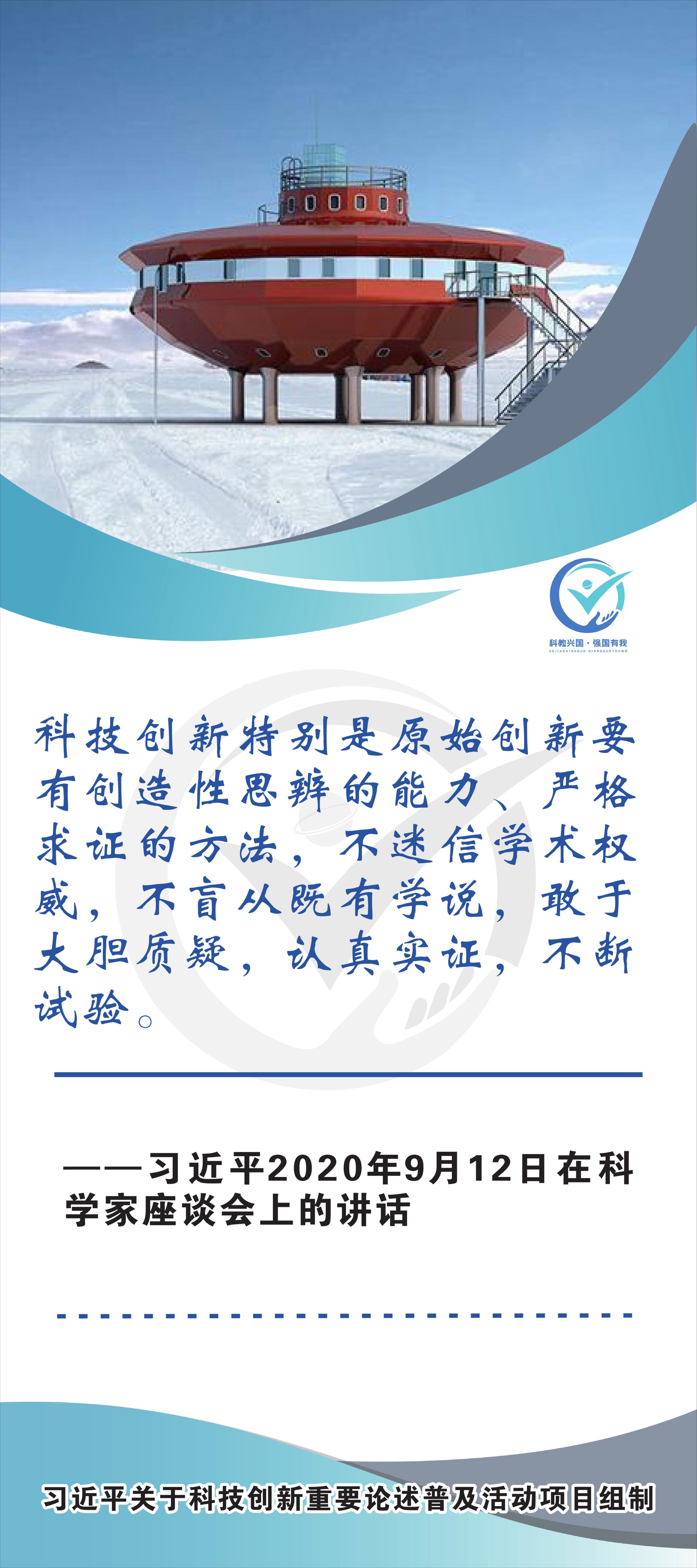 活动现场设立了30张立幅原文海报,设置原著展台,结合多媒体原声播放生动还原习近平总书记对于科技自立自强的重要论述,辅以现场宣讲,在较短时间内让参观者充分掌握本专题的核心要义和思想伟力。采取学习“习语金句”和金句问答等方式,有助于大学生把握重要讲话精髓,也有助于师生共同探索思政和科普相结合的宣教途径。外宣版块通过在学校教学楼出入口醒目位置设立打卡墙,提高昭示性,鼓励自拍互拍上网上群,扩大活动影响力,推动科技创新专题的主题教育走深走广走实,弘扬新时代科学家精神,凝聚创新创造激情和科技报国热情。