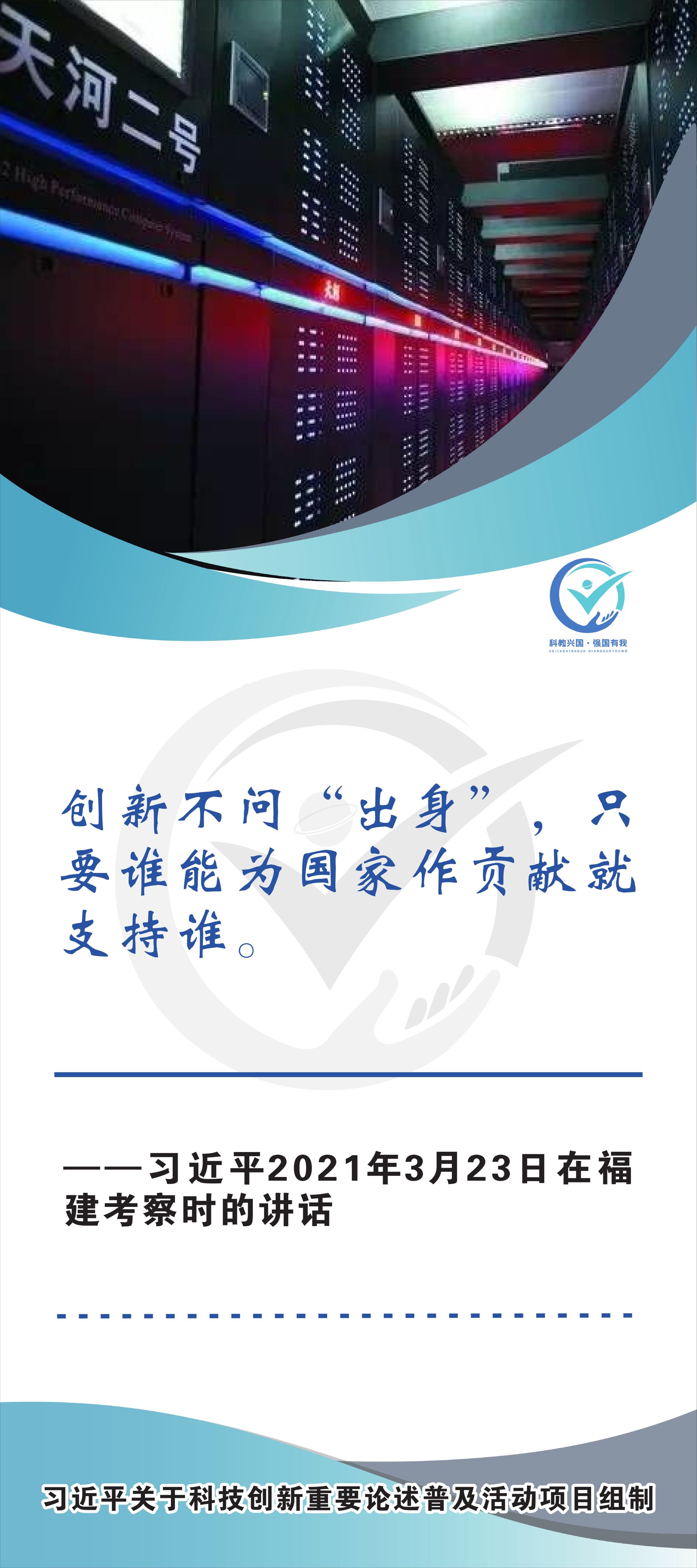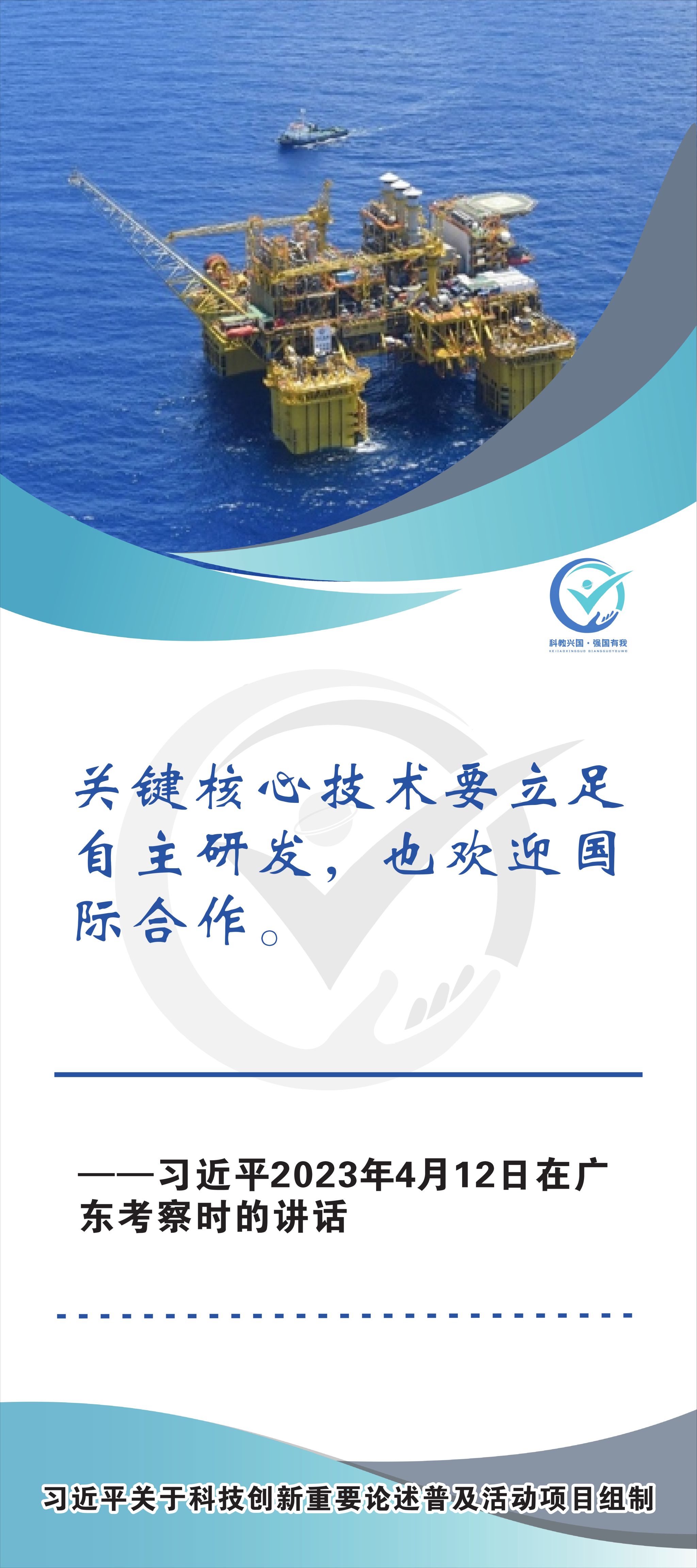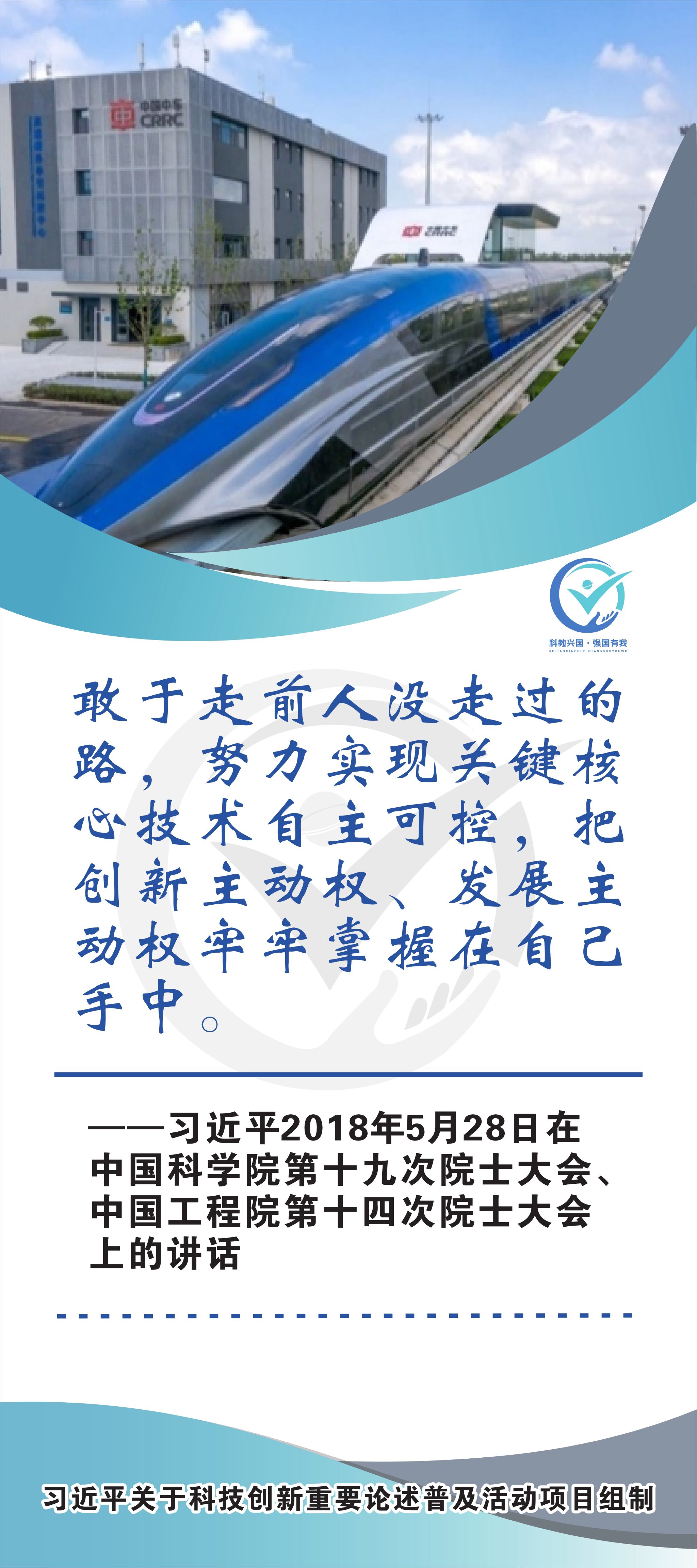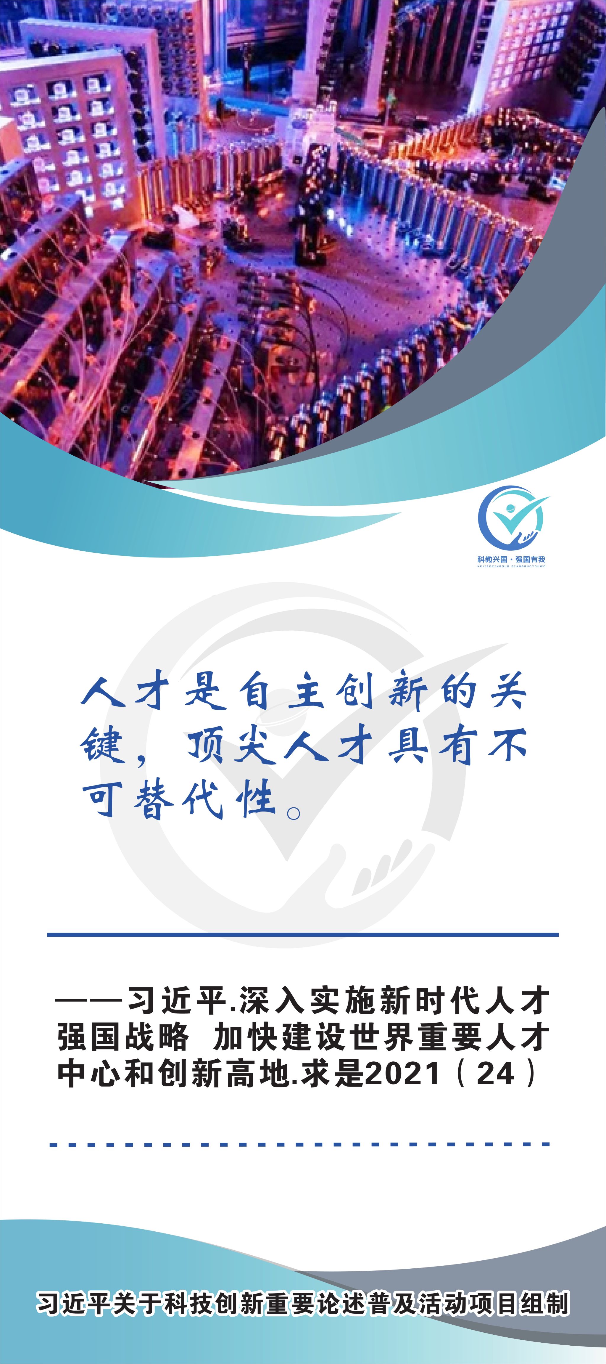 活动现场设立了30张立幅原文海报,设置原著展台,结合多媒体原声播放生动还原习近平总书记对于科技自立自强的重要论述,辅以现场宣讲,在较短时间内让参观者充分掌握本专题的核心要义和思想伟力。采取学习“习语金句”和金句问答等方式,有助于大学生把握重要讲话精髓,也有助于师生共同探索思政和科普相结合的宣教途径。外宣版块通过在学校教学楼出入口醒目位置设立打卡墙,提高昭示性,鼓励自拍互拍上网上群,扩大活动影响力,推动科技创新专题的主题教育走深走广走实,弘扬新时代科学家精神,凝聚创新创造激情和科技报国热情。