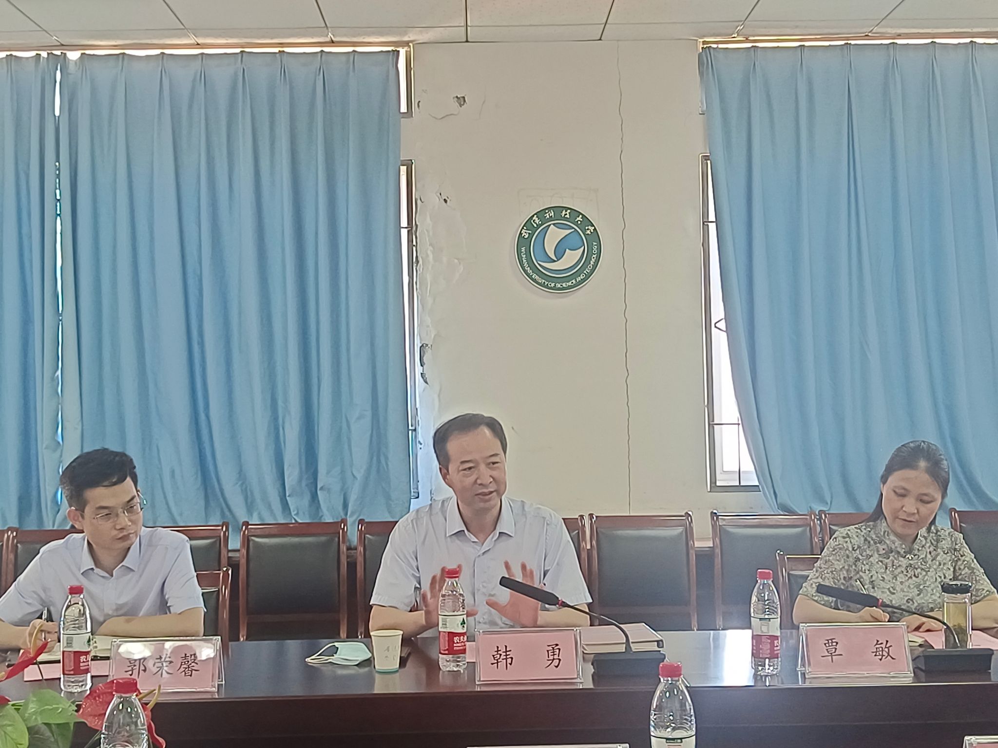 孙国胜在致辞中代表学校对韩勇主任一行表示热烈欢迎,对省委党建办长期以来对学校的关心和支持表示感谢。他表示,此次调研是一次非常好的机会,希望省委党建办在党建工作上给予更多的指导,学校将进一步在理论研究、课题申报、智库建设等方面为省委省政府积极贡献武科大力量。