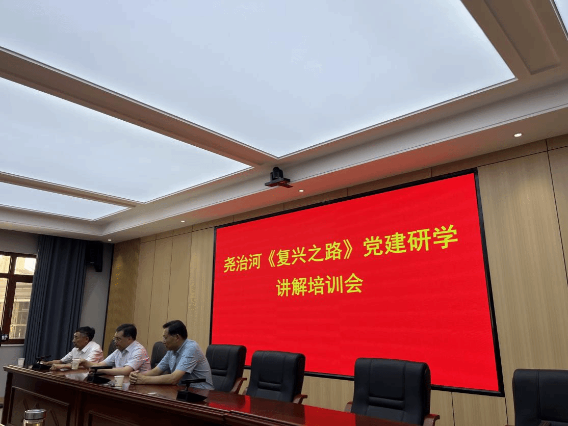 在交流讨论环节,唐忠义在讲话中从尧治河的建设发展、基地建设和深入党史学习教育三个方面强调了《复兴之路》党建研学基地的重大意义,从布局和内容等方面详细介绍了八大场馆的核心功能,同时提出了重点讲解要求,给出了学习建议,列出了学习书目。马平均围绕《复兴之路》的设计理念、思路和创新点,讲解注意事项等进行了阐述。