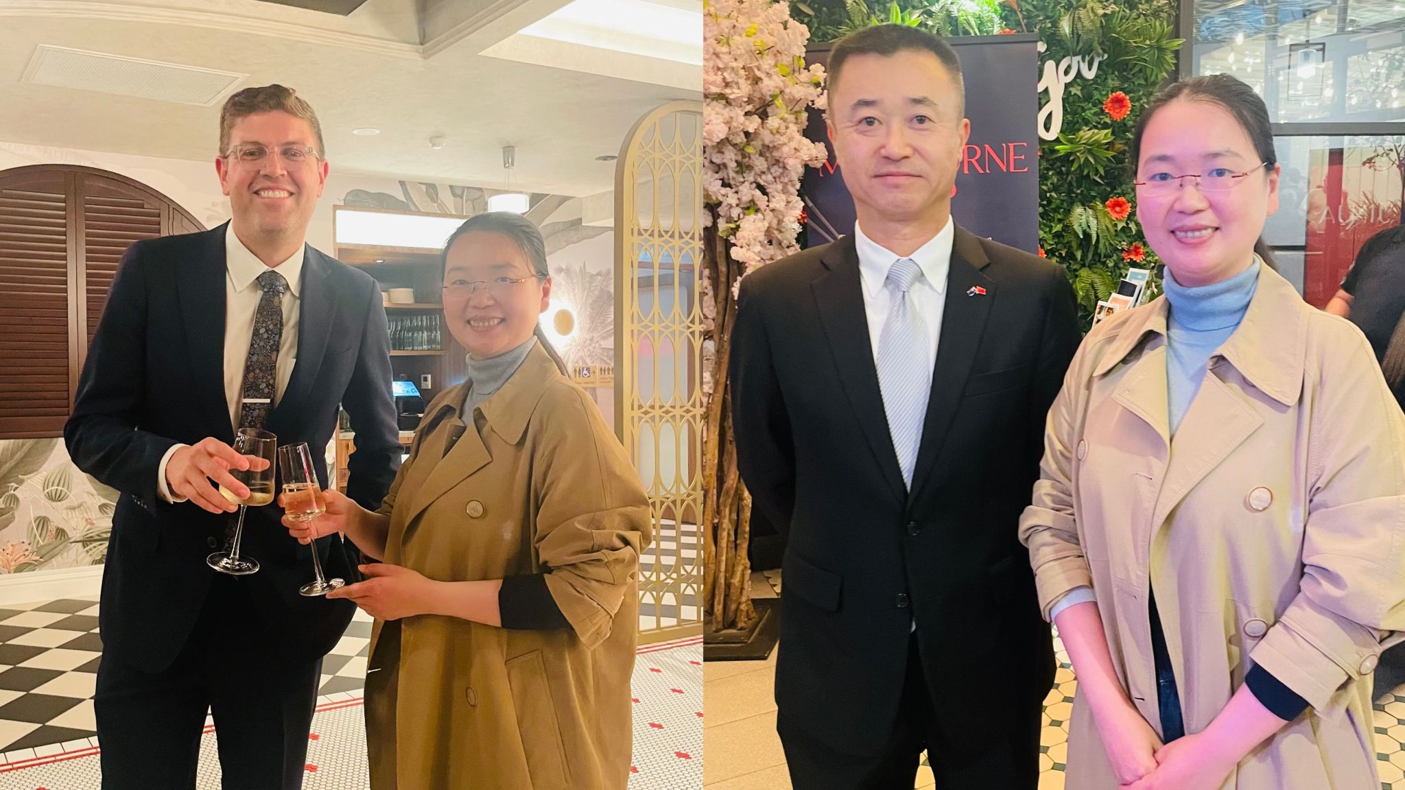 中秋节将近,张晶教授作为中国访问学者受邀参加澳联邦议员杰罗姆Jerome在总督酒店 (The Governor Hotel) 举行的庆中秋晚宴,并与中国驻悉尼总领馆代总领事王春生、新南威尔士州州长柯民思 Chris Minns亲切交流并合影留念。