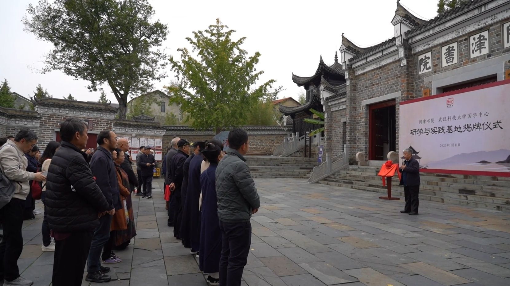 11月11日,williamhill中文国学中心“研学与实践基地”揭牌仪式在武汉市新洲区问津书院举行。第八届君子文化论坛代表50余人出席揭牌仪式并参观问津书院。