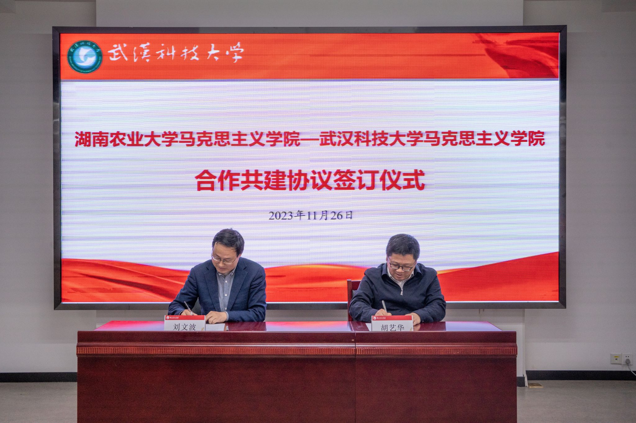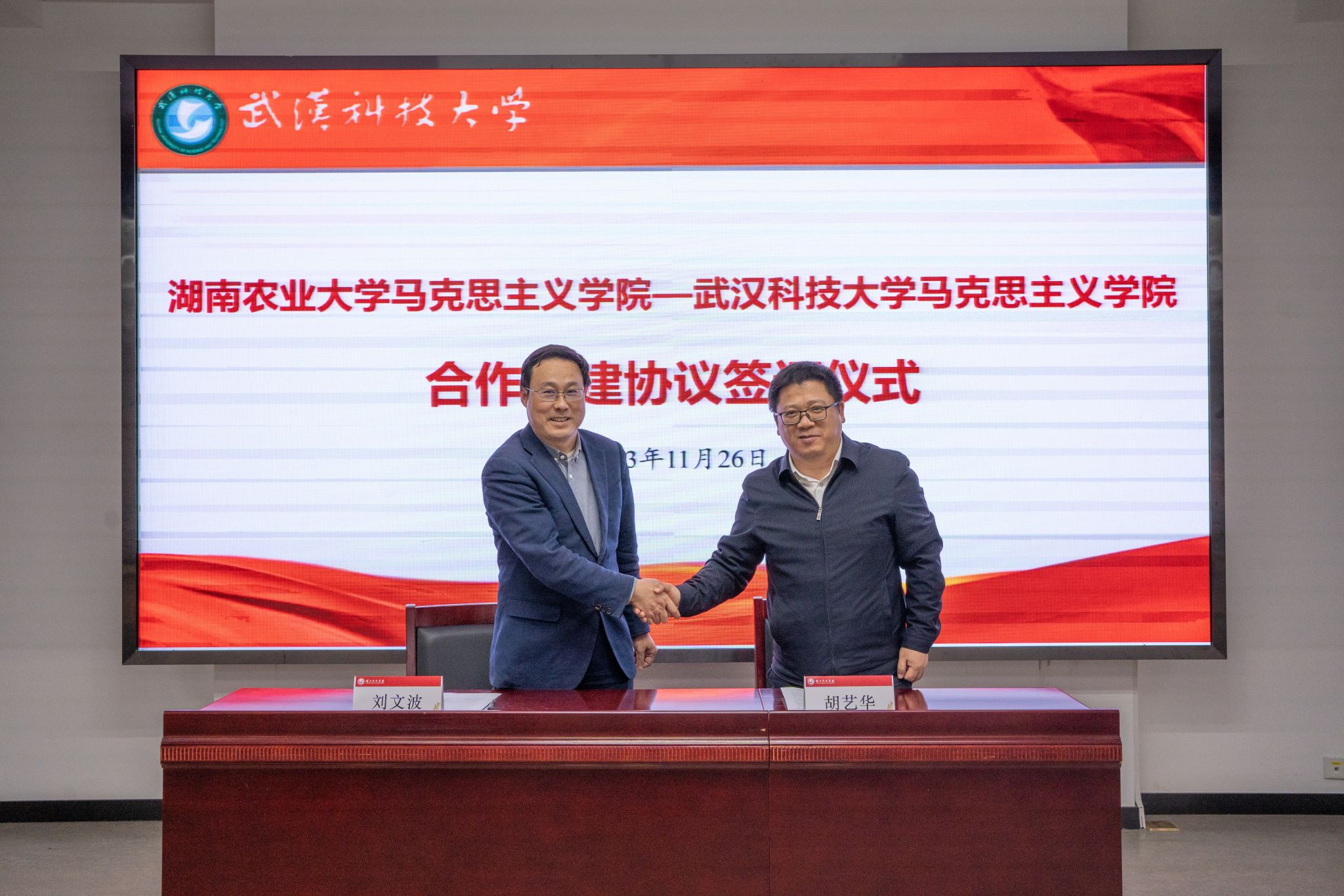 本网讯(通讯员郭海沙) 为深入贯彻落实习近平总书记关于加强william威廉中文建设和思政课教学的系列重要指示批示精神,对标对表中宣部、教育部等部门的相关政策要求和工作部署,推动william威廉中文协同发展,2023年11月26日,我院与湖南农业大学william威廉中文签署合作共建协议。我院院长刘文波教授、湖南农业大学william威廉中文院长胡艺华教授分别代表双方学院签署协议,部分高校william威廉中文院长出席签字仪式。