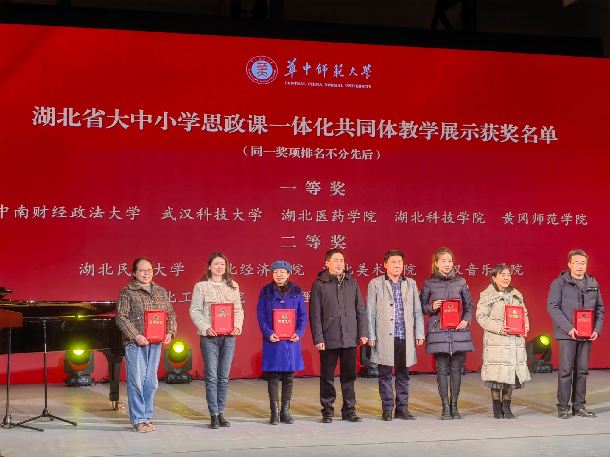 武科大网讯(通讯员陈希)1月3日,湖北省大中小学思政课一体化共同体表彰大会暨“歌声中的党史”特色思政课展演活动在华中师范大学音乐厅召开。我校作为牵头高校,湖北商贸学院、武汉城市学院、武汉铁路桥梁职业学院、仙桃职业学院、仙桃市教育局、仙桃市理工中等专业学校、仙桃市第八中学、仙桃市第三中学、仙桃市仙桃小学共同参与完成的教学展示获全省一等奖。