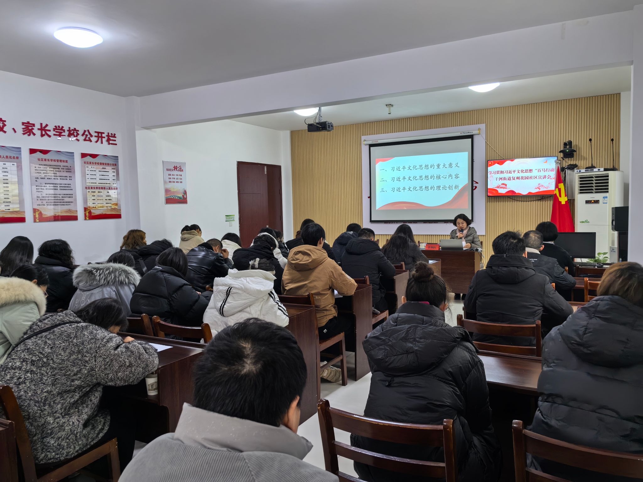 在胡场镇,张齐武教授以《建设物质文明和精神文明全面发展的社会主义—深入学习贯彻习近平文化思想》为主题进行了宣讲,全镇机关和下辖村湾干部、党员约150人参加活动。宣讲从社会主义文化建设理论常识、习近平文化思想的主要内容、习近平文化思想的重大创新、协调发展物质文明和精神文明四个方面展开,深入展现和阐释了习近平文化思想的博大精深和核心要义。在实践要求方面,结合中央经济工作会议精神,从科学认识经济基础与上层建筑的关系、物质财富与精神财富的关系、物质文明与精神文明的关系出发,指出必须以习近平文化思想为指导,统筹抓好物质文明和精神文明建设,推动形成适应新时代要求的思想观念、精神面貌、文明风尚、行为规范,确保中国特色社会主义伟大事业行稳致远。