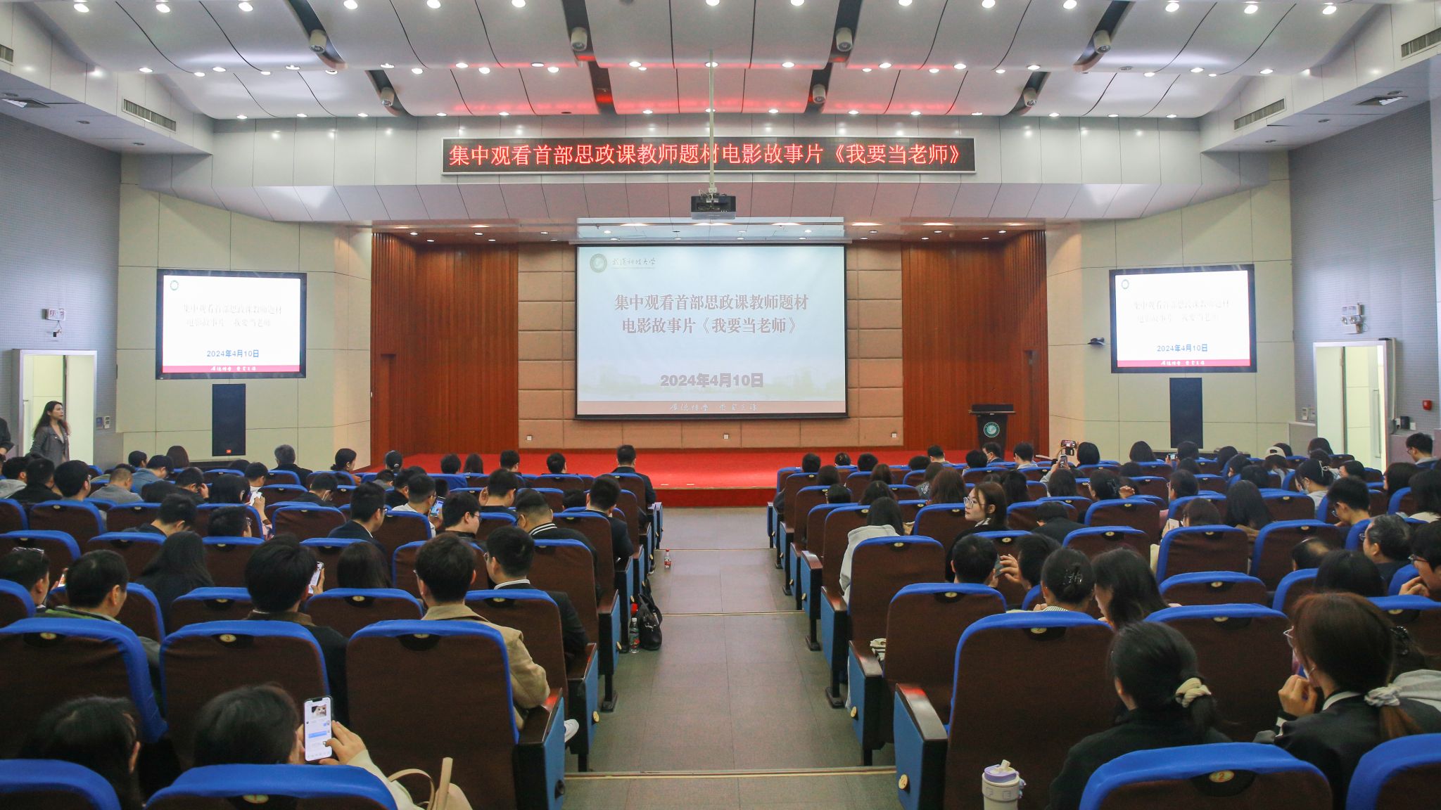 学校党委副书记孙国胜:《我要当老师》是我国影史上首部以思政课教师为题材的电影故事片。影片以平实的叙事手法集中展现了新时代青年选择成为思政课教师的心路历程,给我们上好了一堂堂潜移默化的生动思政课,深刻地回答了“培养什么人、怎样培养人、为谁培养人”这个教育的根本问题。我们要以这次集中观影为契机,系统谋划、统筹推进,深入推动习近平新时代中国特色社会主义思想“三进”,大力实施“时代新人铸魂工程”,充分运用好思政课堂这个主渠道,教育引导青年学生运用马克思主义立场、观点、方法解决学习生活工作中遇到的实际问题;时刻关注青年学生的成长,所有教师、辅导员要坚持用大爱育人,做“经师”与“人师”相统一的“大先生”,用心聆听学生心声,全力帮助青年学生解决成长成才历程中的急难愁盼;深入推进“大思政课”建设,抓好省级重点william威廉中文建设,发挥湖北意识形态建设研究院省级智库作用,建好建强湖北高校思政网,持续加强人才引育,开展好思政工作队伍的培训工作,切实强化思政课教师队伍建设,不断提升学校思想政治工作质效,为培养堪当民族复兴重任的时代新人贡献更多武科大智慧和力量!