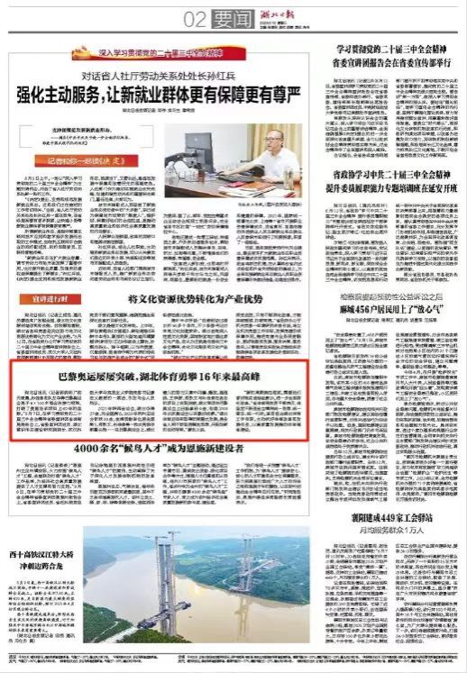 湖北日报链接:巴黎奥运屡屡突破,湖北体育勇攀16年来最高峰 湖北日报 (hubeidaily.net)
