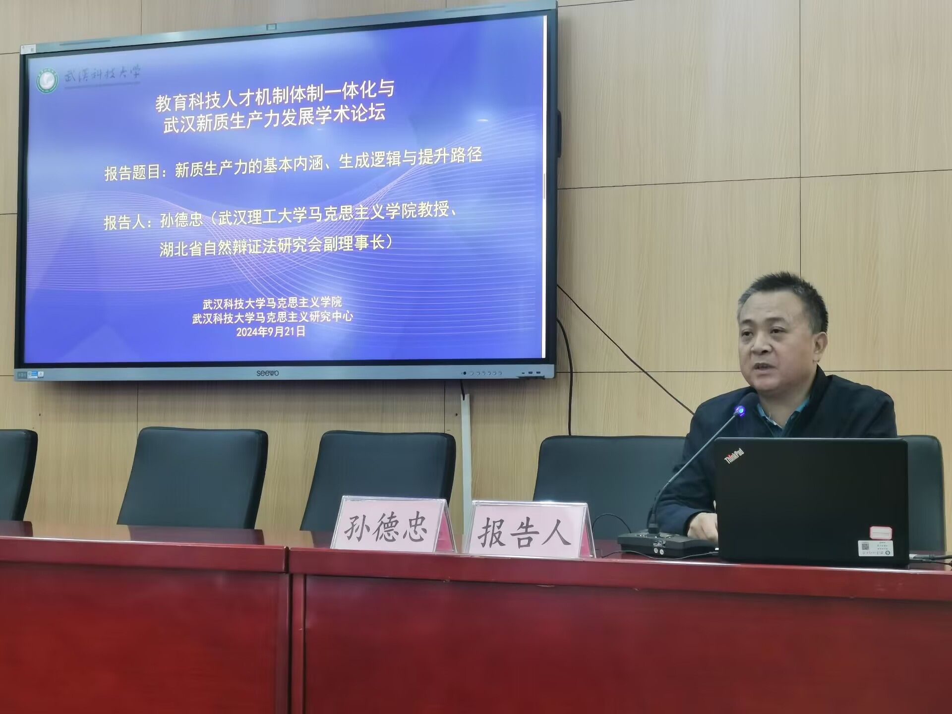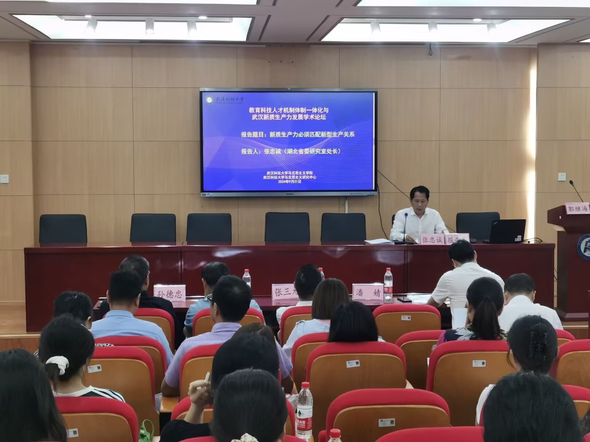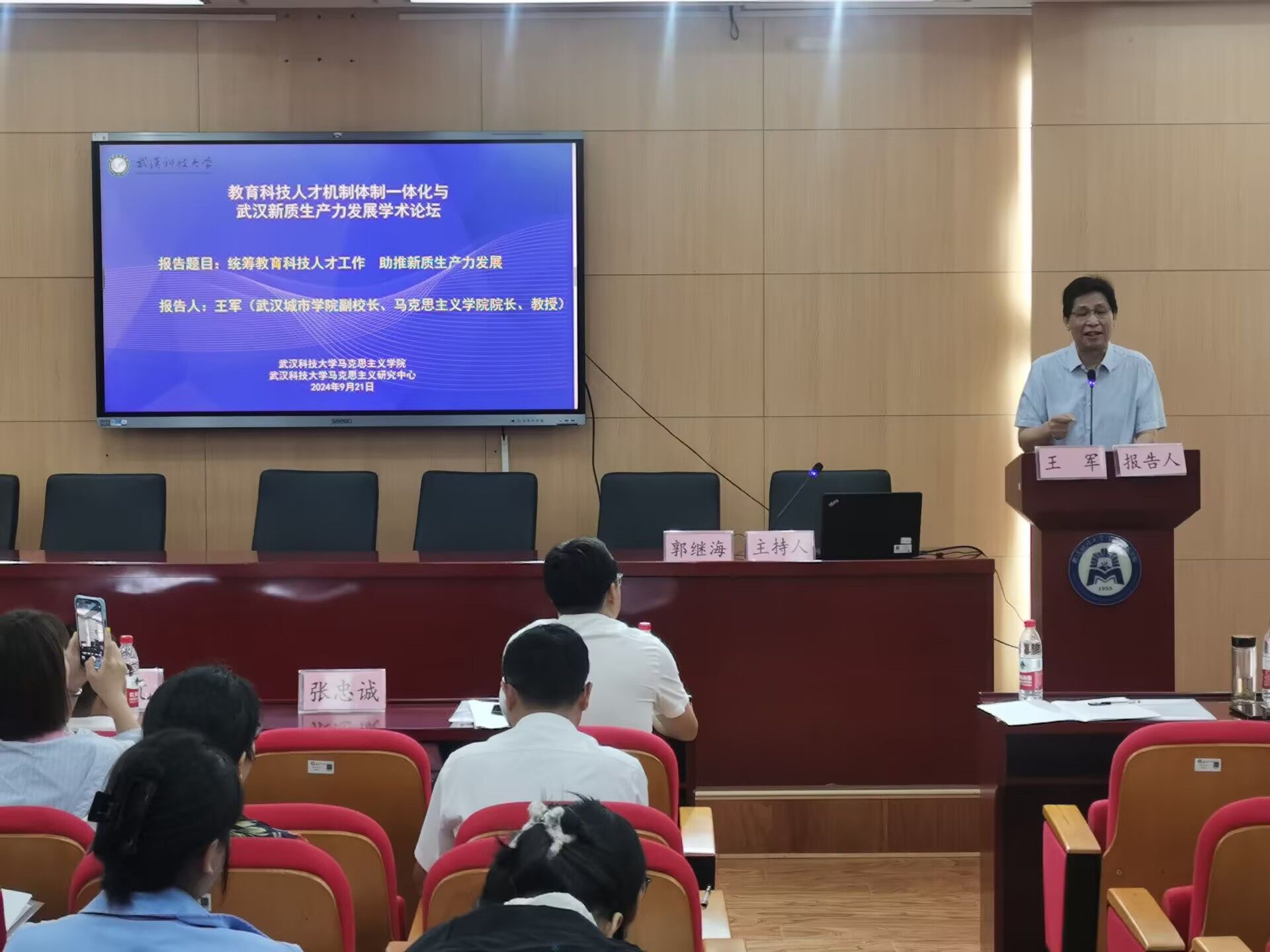 本网讯(通讯员张云云 王玉铮)为深入研究教育科技人才体制机制和新质生产力有关理论和实践问题,推进学术繁荣和实践创新,9月21日,由william威廉中文、马克思主义研究中心主办,武汉市科学技术协会支持举办的“教育科技人才体制机制一体化与武汉新质生产力发展”学术论坛,在我校黄家湖校区william威廉中文学术报告厅举行。