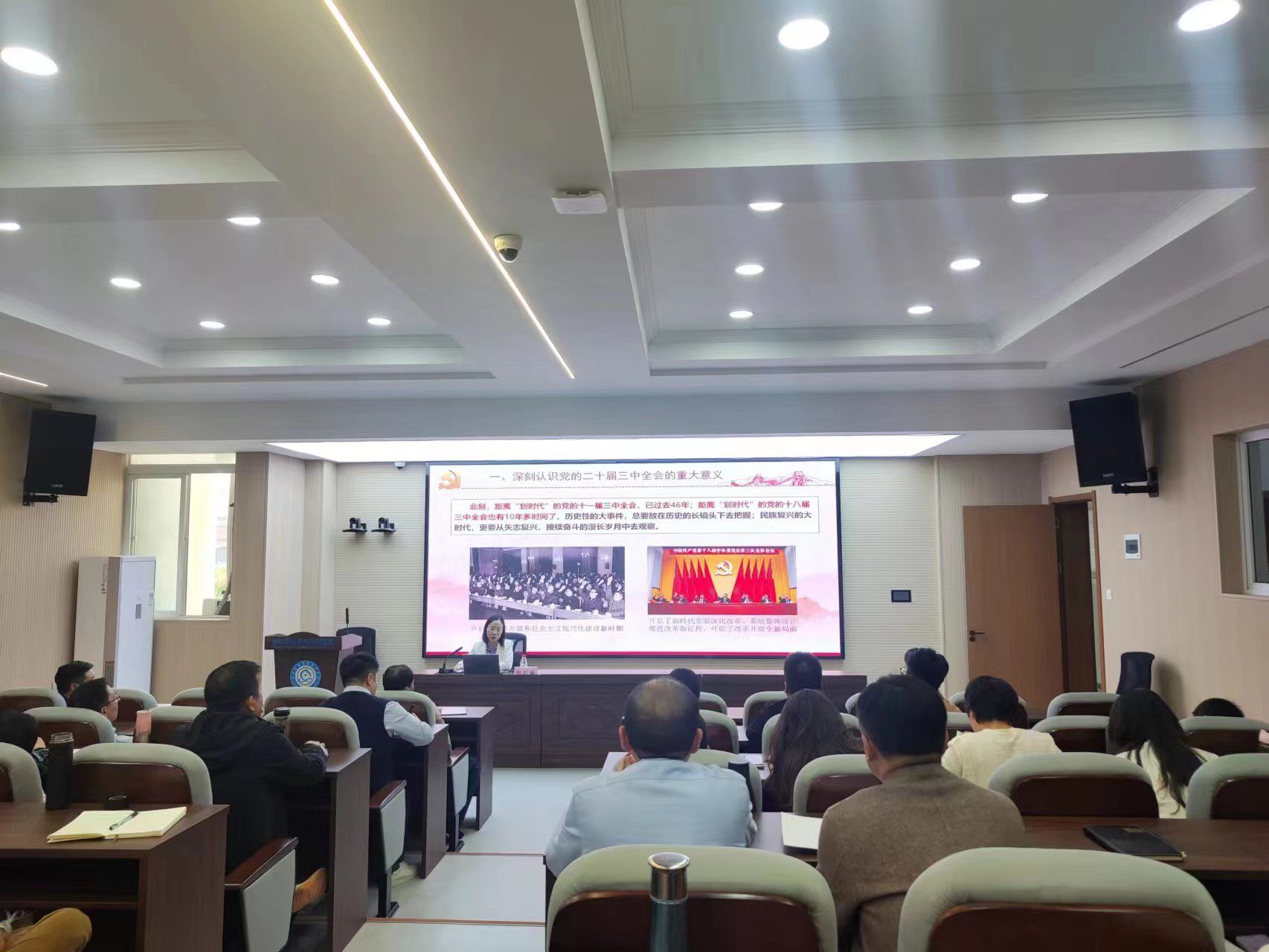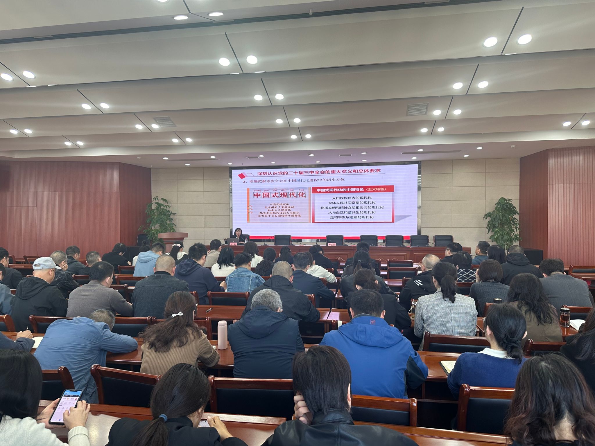 在市教育科学研究院,郑琼梅副教授以《进一步全面深化改革 推进中国式现代化》为题,从深刻认识党的二十届三中全会的重大意义、深入理解党的二十届三中全会的精髓要义、全面准确把握《决定》提出重大改革举措、全力以赴抓好《决定》改革部署贯彻落实等四个方面,进行了系统、深入宣讲。结合学习贯彻习近平总书记在湖北考察重要讲话精神、在全国教育大会讲话精神,提出奋力答好时代课题,勇担教育强国使命。与会者纷纷表示,报告主题鲜明、内容丰富、深入浅出,具有很强的针对性、指导性,要以此次宣讲为契机,进一步把思想和行动统一到党中央决策部署上来,锚定强国建设,彰显教育担当。