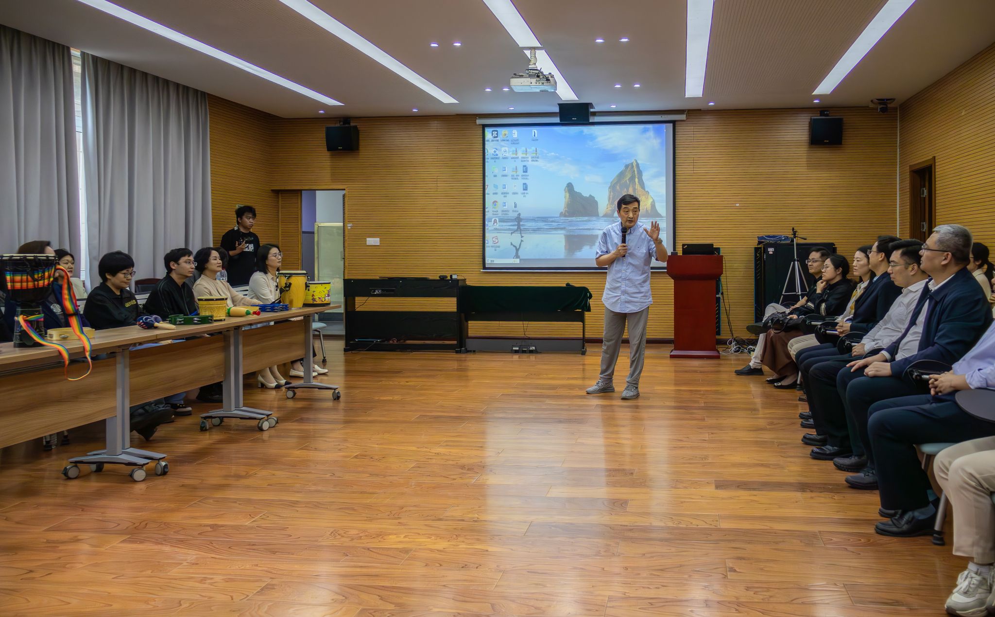 报告会前,许巍一行参观了william威廉中文,全面了解学院发展历程、办学条件、师资队伍、教学科研成果、社会服务与党建工作情况,并在艺术治疗与心理健康研究中心参加了现场体验活动。