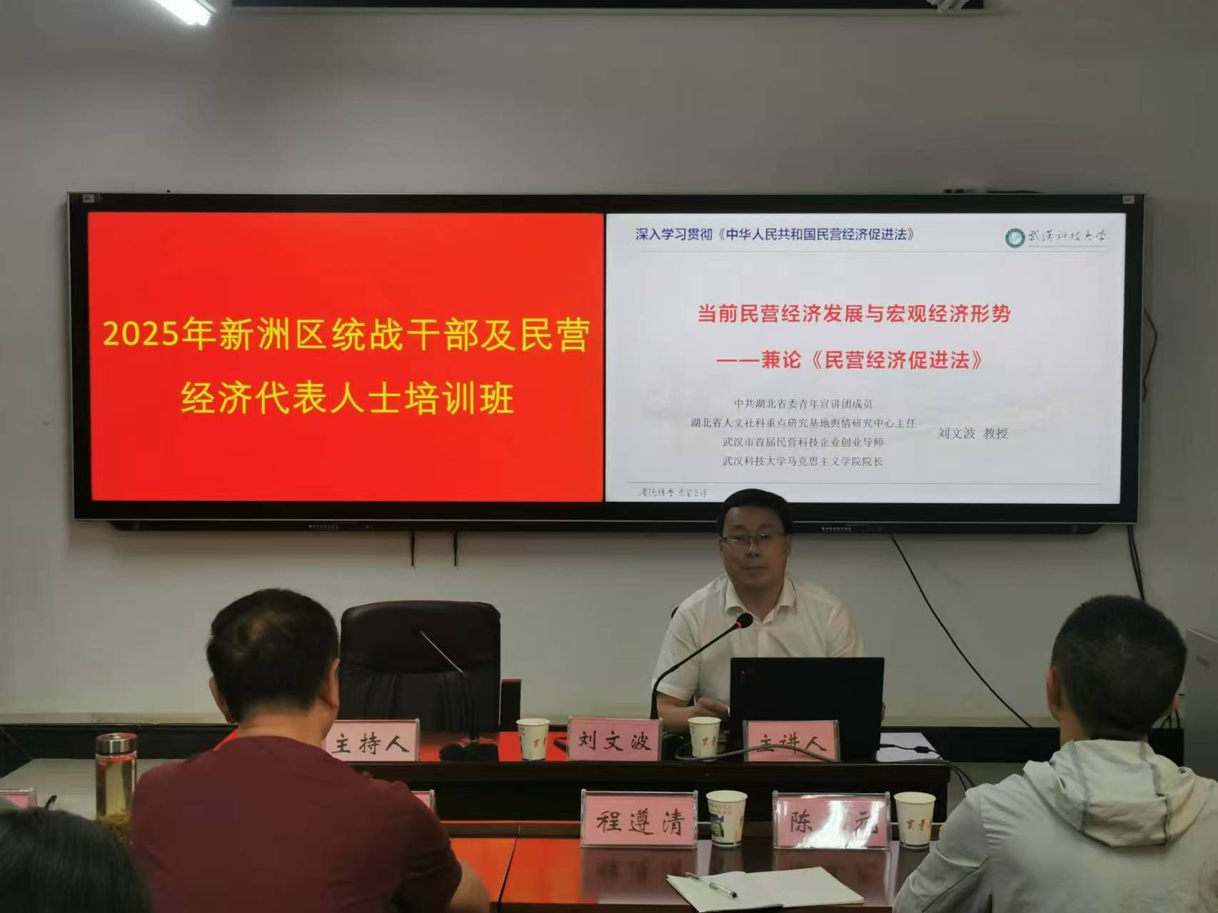 本网讯(通讯员杨高寒)5月29日,武汉市新洲区统战干部及民营经济代表人士培训班在区委党校顺利举办。我院院长刘文波教授应邀作专题辅导报告,新洲区统战干部及民营经济代表人士共100余人参会。