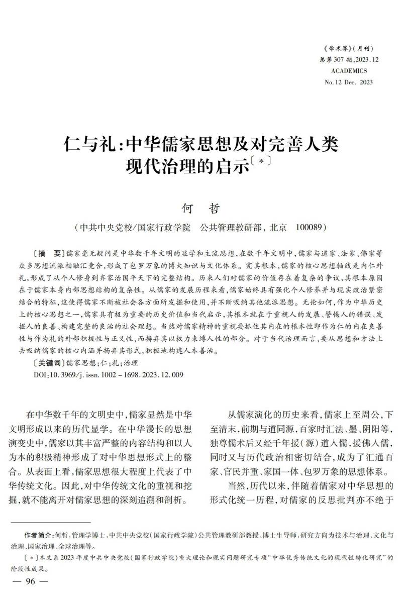 仁与礼:中华儒家思想及对完善人类现代治理的启示