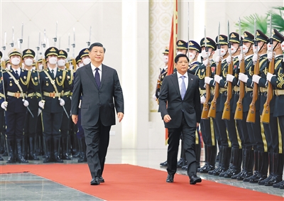 一月四日,国家主席习近平在北京人民大会堂同来华进行国事访问的菲律宾总统马科斯举行会谈。这是会谈前,习近平在人民大会堂北大厅为马科斯举行欢迎仪式。 新华社记者 姚大伟摄 |