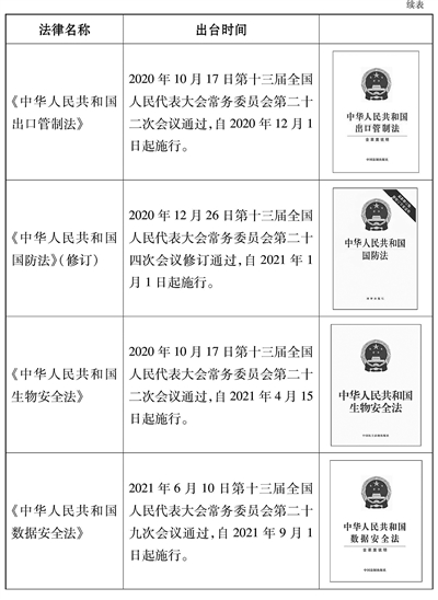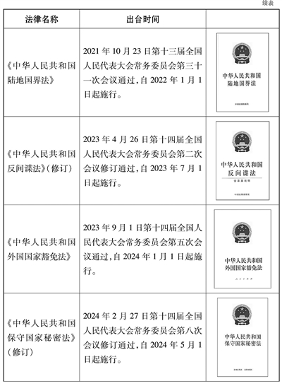 完善国家安全法治体系。积极推进重点领域、新兴领域、涉外领域国家安全立法,完善涉外法律法规体系和法治实施体系,健全国家安全党内法规体系,打通立法、执法、司法、普法的痛点堵点。