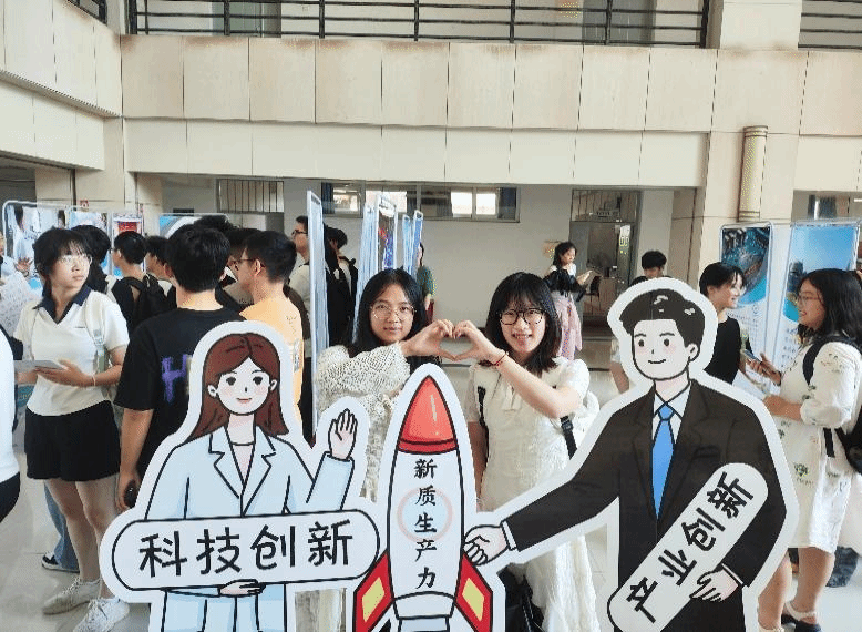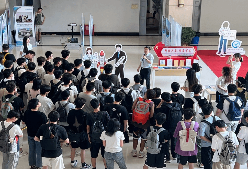在实践教学环节,师生移步教一楼中庭西侧的“融合向新:新质生产力视角下的科技创新和产业创新”科普展区。张齐武教授以我校樊希安教授团队的芯片研发成果、丁文红教授领衔的专利技术为例,生动解读科技创新与产业创新的深度融合逻辑,鼓励学生弘扬卓越工程师精神,投身科技自立自强实践。
