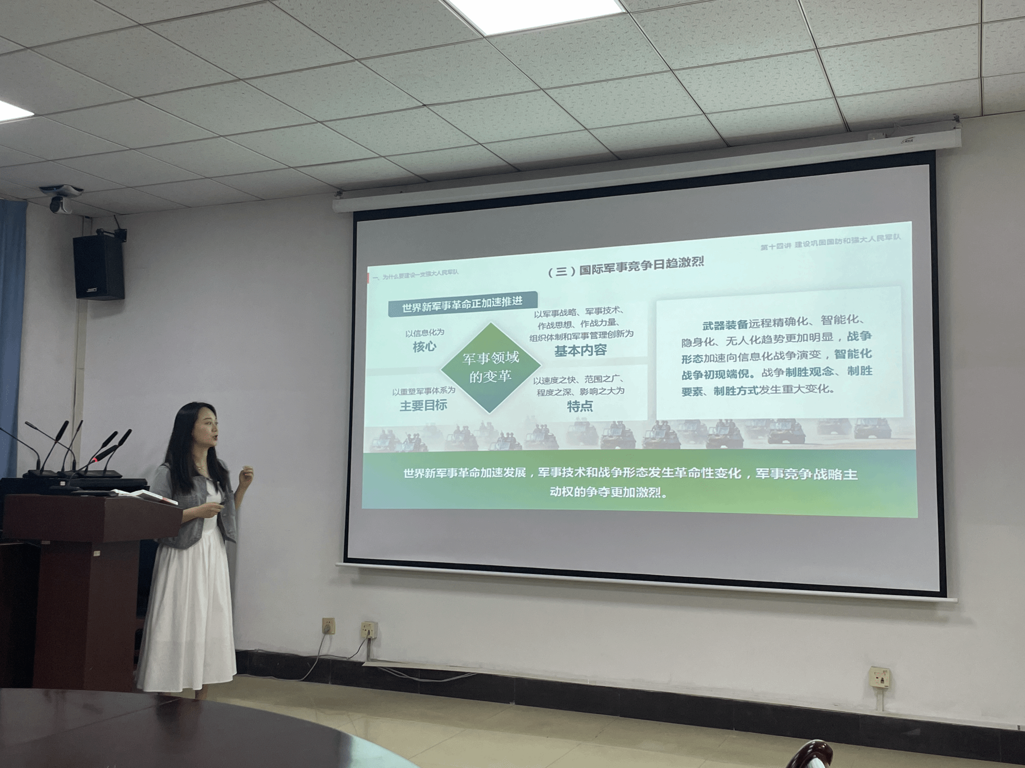 田舒柳老师围绕教材第十四章“建设巩固国防和强大人民军队”有关内容,从习近平强军思想的基本内涵和要求出发,对“为什么要建设巩固国防和强大人民军队”、“如何理解党在新时代的强军目标”、“怎样建设巩固国防和强大人民军队”等问题进行了具体分析,并提出要结合近代以来中国国家安全状况的发展,以及党领导人民军队建设的历史,讲清楚新时代加快推进国防和军队现代化建设的必要性和战略意义,强调要充分运用现实的生动案例讲好新时代强军故事。