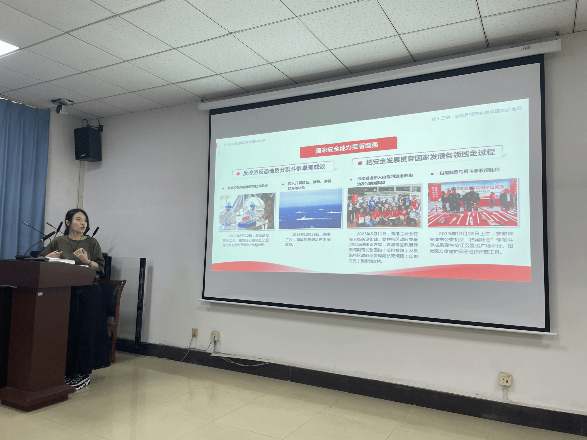 何頔老师围绕教材第十三章“维护和塑造国家安全”有关内容,从全面贯彻落实总体国家安全观的思路出发,着重对“新时代为什么要提出总体国家安全观”、“如何认识和把握总体国家安全观”、“新时代如何维护和塑造国家安全”等问题进行了具体分析,强调在教学过程中要讲清楚“总体国家安全”等关键概念,要注意提示学生将教学课件与教材内容密切联系,特别是要注意从国家权威资讯平台选取信息以充实教学内容。