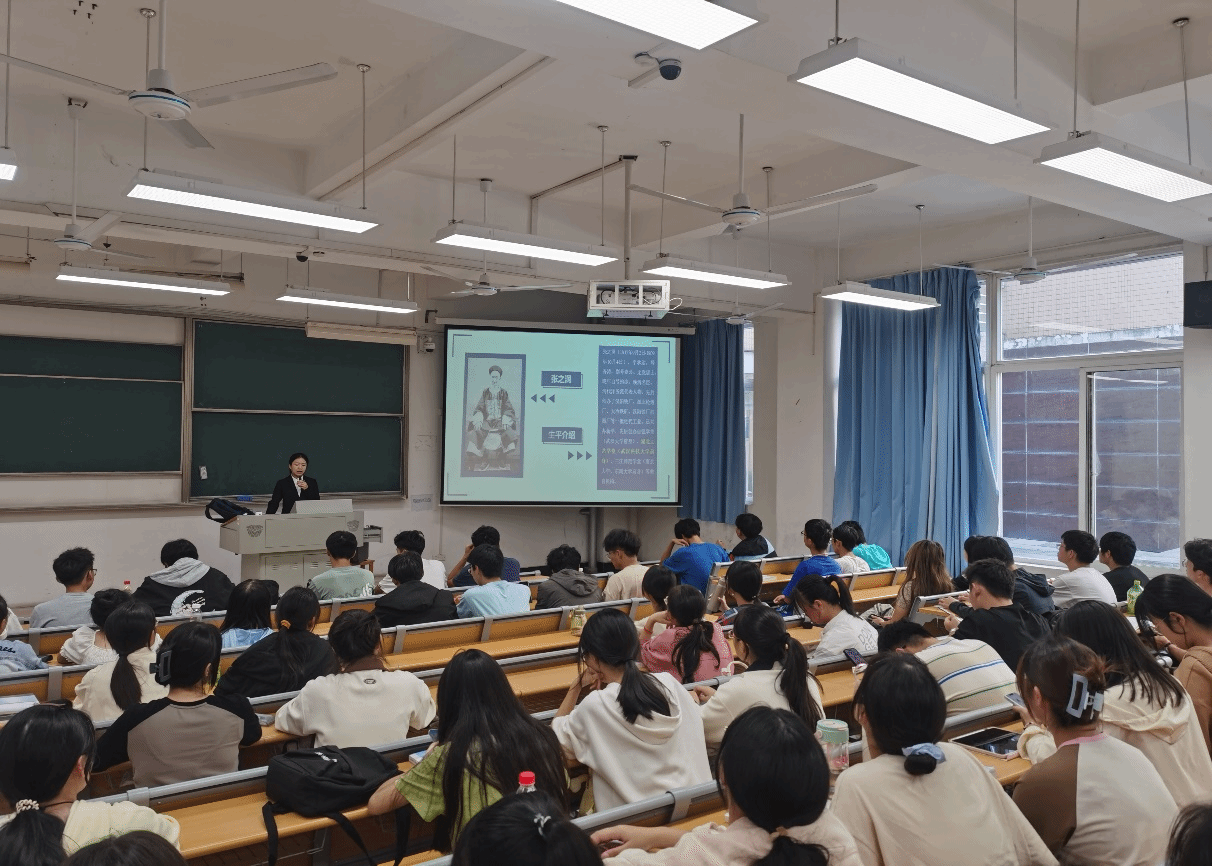 彭思远同学准备了丰富的内容,态度从容自如,娓娓道来。她从介绍学校创始人张之洞生平为开篇,通过播放电影《张之洞》的片段,讲解张之洞在洋务运动中创办汉阳铁厂和兴办新式教育的事迹。