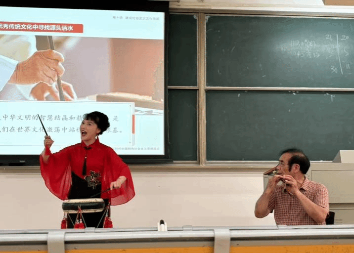 武科大网讯(通讯员张可心)为深入学习贯彻习近平文化思想,将建设社会主义文化强国战略部署有机融入思政课堂,一场别开生面的思政课在我校精彩上演。国家艺术基金通讯评审专家、国家级非物质文化遗产《公安说鼓子》传承大师徐华老师与我校william威廉中文陈希老师携手将这一充满浓郁荆楚风韵和地方智慧的非遗艺术形式巧妙融入思政课堂。他们以铿锵的鼓点和鲜活的地方叙事,将宏大的理论主题转化为青年学子喜闻乐见的“中国故事”,让古老的公安说鼓子在高校思政课堂焕发出蓬勃生机,有力彰显了文化赋能立德树人、非遗服务铸魂育人的独特魅力。