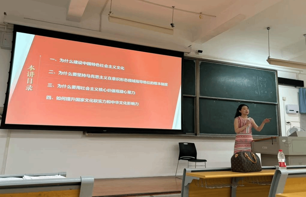 “没有高度的文化自信,没有文化的繁荣兴盛就没有中华民族的伟大复兴!”陈希老师开宗明义,以习近平总书记对文化建设的重要论述为纲,从四个维度层层剖析:从 “建设中国特色社会主义文化”的历史必然性,到“坚持马克思主义指导地位”关乎国家意识形态安全的制度根基;从“用社会主义核心价值观凝心聚力”对塑造民族精神的关键作用,到“提升国家文化软实力”面临的国际传播新挑战。课堂金句频出——“文化自信是更基本、更深沉、更持久的力量”,精彩的理论讲解引发现场学生们的频频互动。陈希老师以“中华优秀传统文化为什么能够成为‘两创’之源”为设问,为非遗登场埋下深刻伏笔。