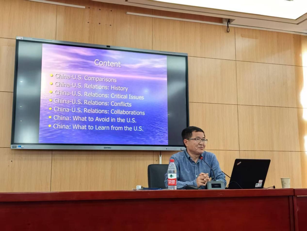 徐新义教授以“中美关系:关键问题”为主题,凭借扎实的学术功底和跨文化视角,从历史脉络、现实挑战与战略应对三方面展开,聚焦中美比较、中美关系的历史、中美关系的冲突、中美关系的未来合作等内容进行系统论述、讲解。其提出创新性观点,引发在场师生热烈共鸣。
