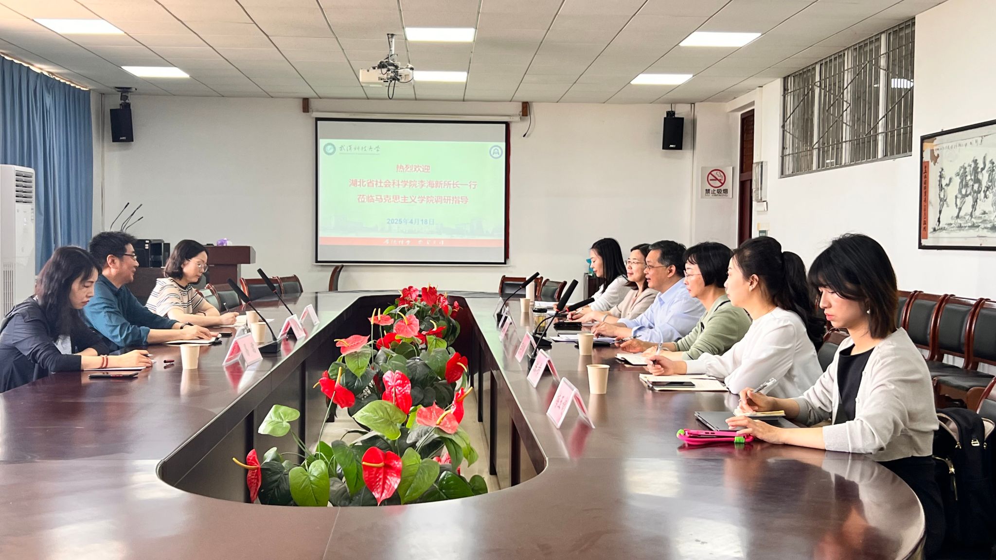 本网讯(通讯陈希 周怡君)根据有关部门工作安排,4月18日上午,湖北省社科院政法所所长李海新一行三人来我院调研湖北省新型智库发展建设状况。学院党委书记、湖北意识形态建设研究院院长唐忠义主持座谈会。