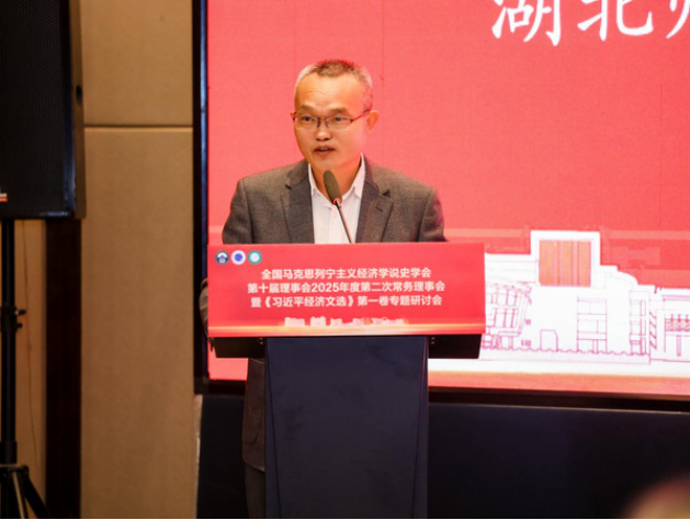雷儒金首先代表湖北师范大学向与会嘉宾表示热烈欢迎。他指出,黄石是近代中华民族工业的重要发源地,也是资源型城市转型升级的“实验田”。他表示,学校正处于申博创优关键阶段,更需借力先进思想、拓展学术视野。学校将充分发挥地域优势与学科特色,把《习近平经济文选》第一卷的系统研究与黄石高质量发展实践紧密结合,为资源型城市“焕新”贡献学理支撑与决策参考,也恳请各位专家传经送宝,以多学科交叉碰撞激发灵感,把党的创新理论转化为推动老工业基地转型的强劲动力。