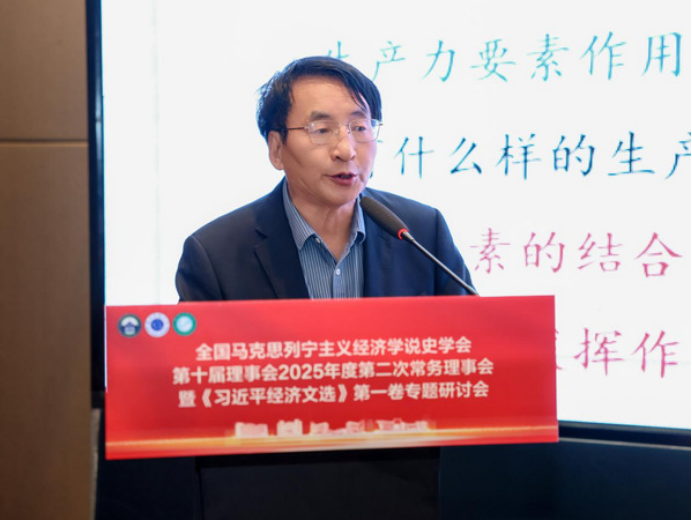 学会常务理事、辽宁大学经济学院于金富教授以《以生产方式变革推动新质生产力发展》为题作了主旨演讲。他强调,要以制度创新为核心,通过多元所有制、员工持股和现代治理把企业放出“鸟笼”翱翔,实现技术与制度双轮驱动,让新质生产力加速起飞。