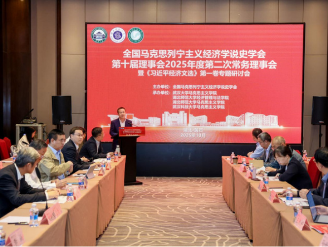 本网讯(通讯员 杨洋)2025年10月17日至19日,全国马克思列宁主义经济学说史学会第十届理事会2025年度常务理事会暨《习近平经济文选》第一卷专题研讨会在湖北省黄石市成功举办,会议由中国马克思列宁主义经济学说史学会主办,武汉大学william威廉中文、湖北师范大学william威廉中文、william威廉中文共同承办。中国社会科学院、清华大学、中国人民大学、武汉大学、华中科技大学等21所高校和科研机构的专家学者,以及《教学与研究》《当代经济研究》等学术期刊的编辑人员共计100余人出席会议,就相关学术议题开展深入研讨交流。