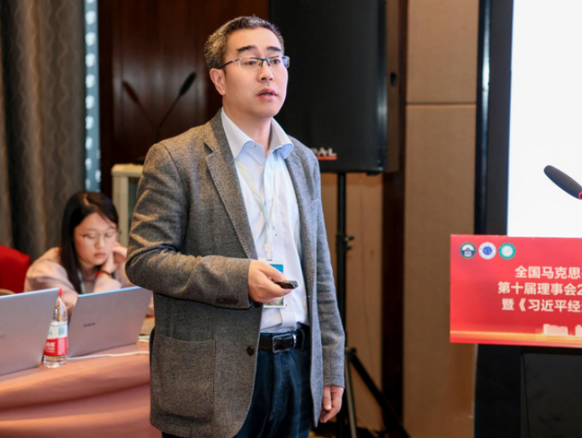 学会副会长、北京理工大学经济学院贾利军教授发表了主旨演讲,题目为《数字经济时代脱实向虚问题的政治经济学分析》。他分析了数字经济时代日益凸显的脱实向虚现象,并提出了切实可行的应对策略和建议,旨在引导数字经济更好地服务于实体经济,实现经济的健康可持续发展。