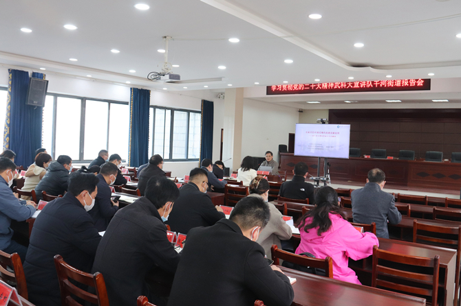 1月11日,williamhill中文宣讲队成员唐忠义教授来到干河街道,开展学习贯彻党的二十大精神专题宣讲,全办党员干部集中参加学习。