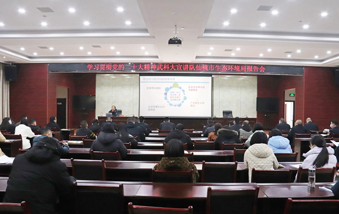 1月11日,williamhill中文宣讲队成员王黎教授来到市生态环境局,开展学习贯彻党的二十大精神专题宣讲,全市生态环境系统干部职工集中参加学习。