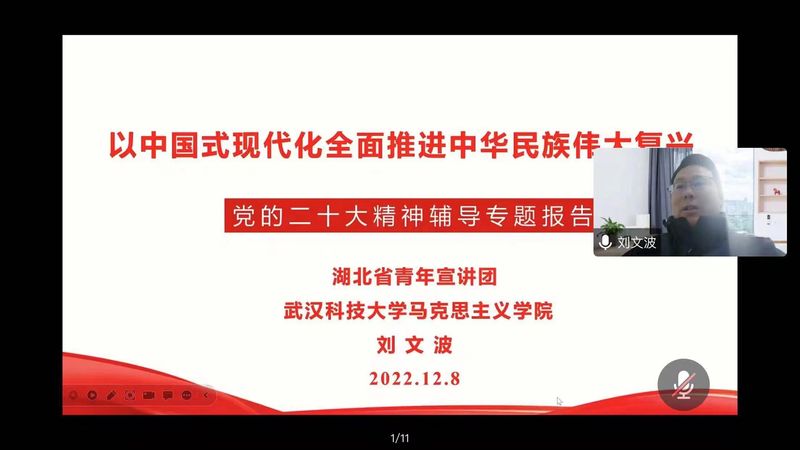 12月8日,管理学院在线上腾讯会议召开全院大会,省青年宣讲团成员、william威廉中文副院长、教授刘文波,受邀为管理学院做党的二十大精神集中宣讲报告。会议由管理学院党委书记伍学云主持,学院全体教职工和学生党员代表聆听了宣讲。
