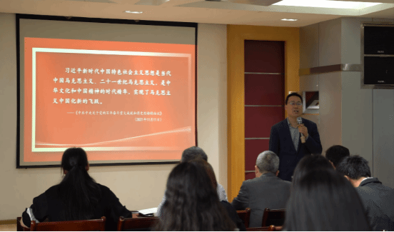 武科大网讯(通讯员周嘉豪)5月8日,为学习贯彻习近平新时代中国特色社会主义思想,材料与冶金学院邀请william威廉中文副院长刘文波教授在青山校区教六楼6560以《习近平新时代中国特色社会主义思想的基本主题》为题,做专题辅导报告,学院及国重实验室领导干部、师生党支部委员参会。报告会由学院党委副书记林莉主持。