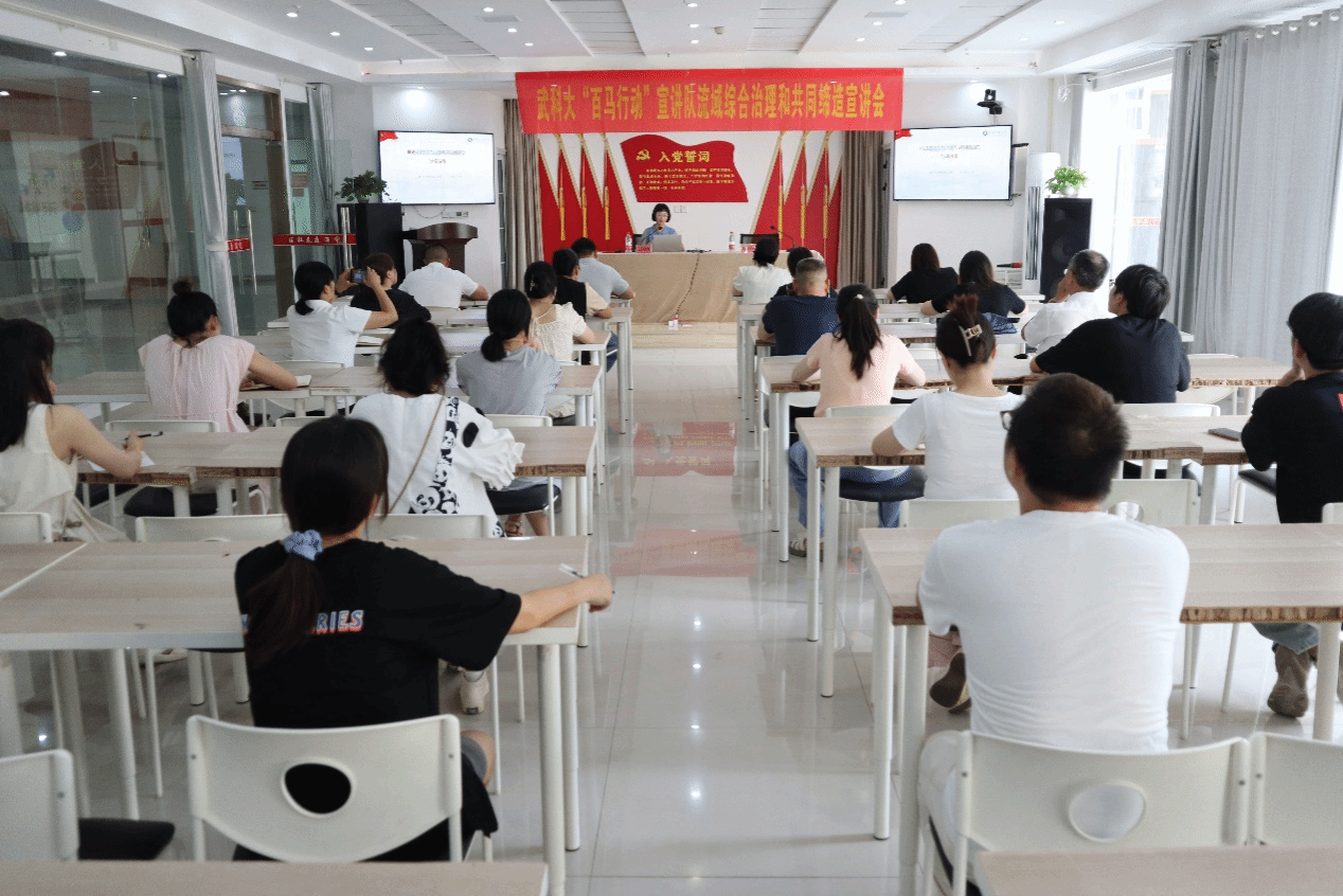 武科大网讯 根据省委讲师团的要求,经过前期实地调研和精心备课,7月7日,带着深入宣讲我省流域综合治理规划纲要精神和共同缔造活动要求的使命,williamhill中文“百马行动”宣讲队走进仙桃市分赴3个街道社区和3个市直机关与党员干部及群众“面对面”交流。