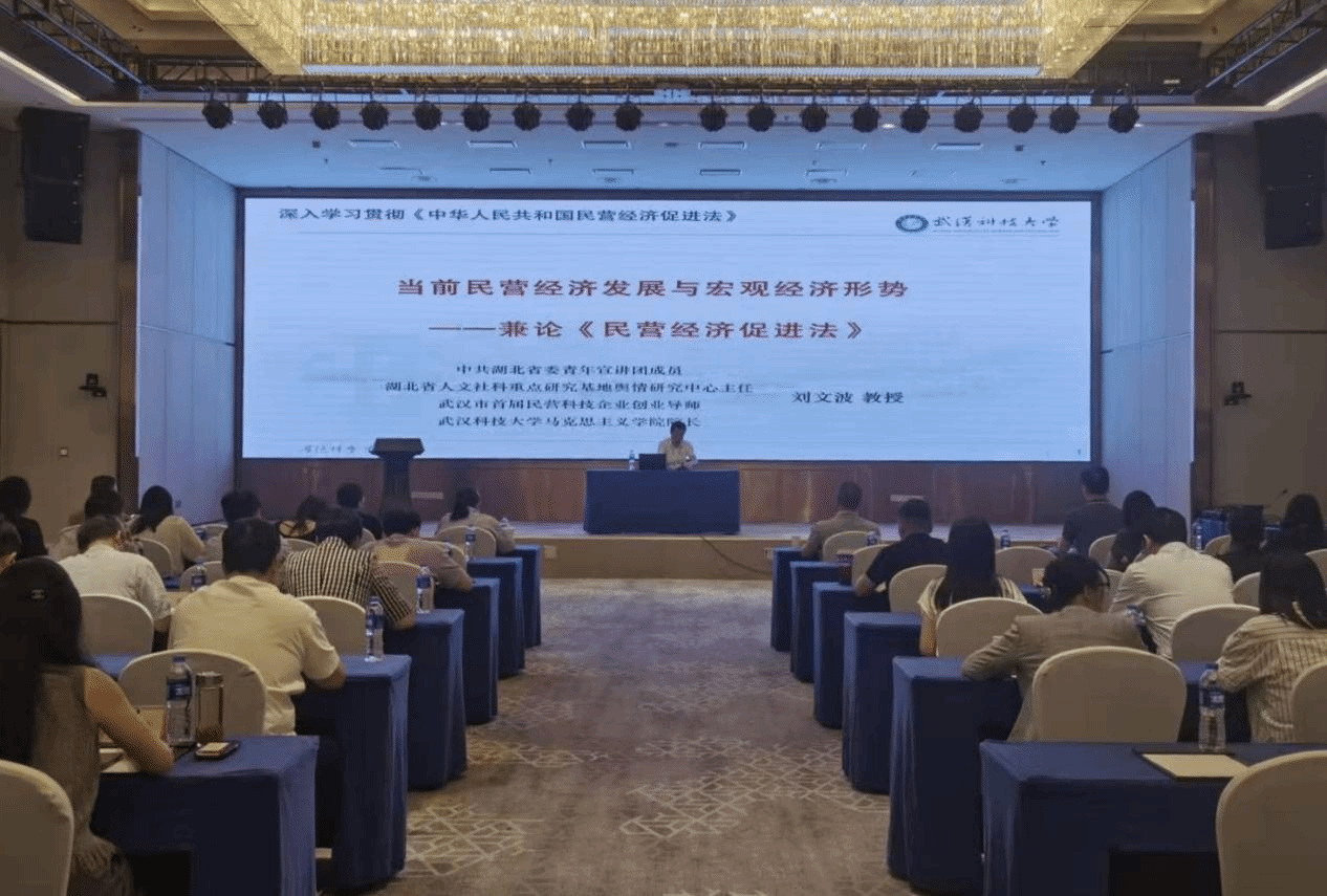 本网讯(通讯员金雨婷)为深入学习贯彻习近平总书记在民营企业座谈会上重要讲话精神,学习宣传《民营经济促进法》,进一步促进民营经济高质量发展,6月12日,武汉市工商业联合会邀请我院院长刘文波教授为武汉市各区工商联分管领导、工作人员及民营经济代表人士作《民营经济促进法》专题辅导报告。