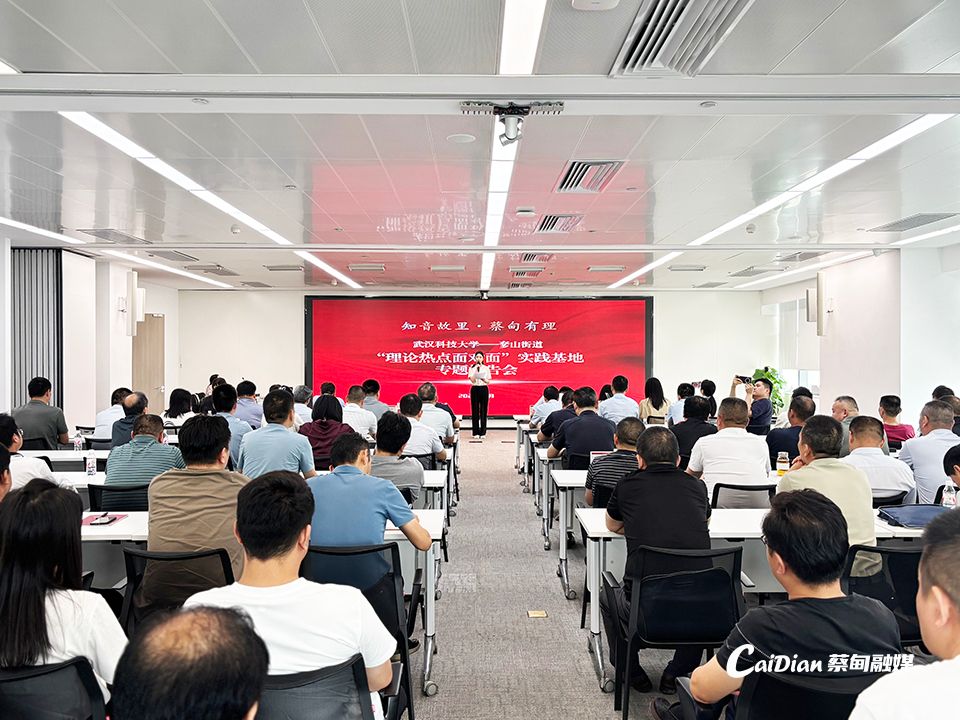 学院党委书记、二级教授唐忠义应邀赴蔡甸经济开发区作专题辅导报告,武汉市委讲师团主任李想,蔡甸区委常委、区委统战部部长、奓山街道党工委书记许永周,蔡甸区委常委、区委宣传部部长胡㼆,副部长范汉秋,学院党委副书记、副院长郭海沙等领导出席会议,奓山街道党工委领导班子成员、区管干部,机关科室负责人,辖区村(社区)党组织书记等一百余人参加会议。