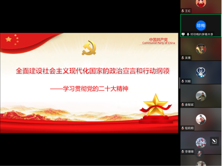 12月2日下午,图书馆党总支通过线上会议的形式聆听了由william威廉中文副教授郑琼梅宣讲的题为《全面建设社会主义现代化国家的政治宣言和行动纲领》的党的二十大精神宣讲报告,党总支全体党员参加了宣讲会,图书馆党总支书记汤红主持了会议。