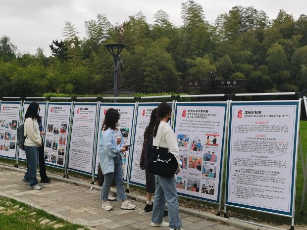 沿着廉园小道,支部成员们还参观了廉政主题的展板和插画。在这里,通过一幅幅生动直观的展板,支部成员们进一步了解了廉政建设相关案例,品悟了颇具我校特色的清廉文化。“作为初入马院党支部的新成员,对一切还充满着陌生,通过参观廉政主题展板,使我对党的对于廉政建设的内容和政策有了更全面细致的了解,也明白了自己作为党员要不断提高自己的党性修养,这也将激励着我在未来的日子里不断努力提升自我。”支部成员陆晨阳分享了感想。