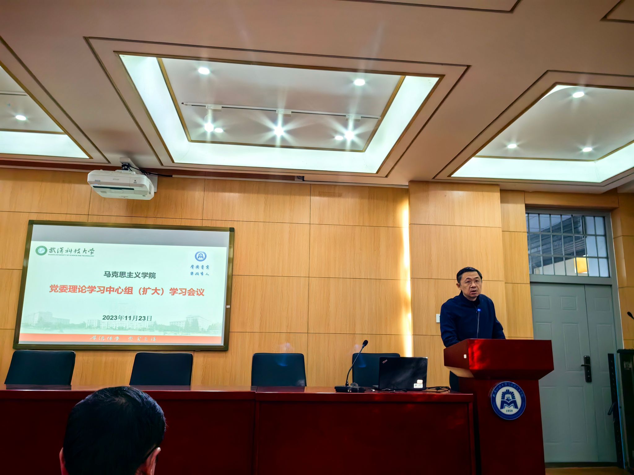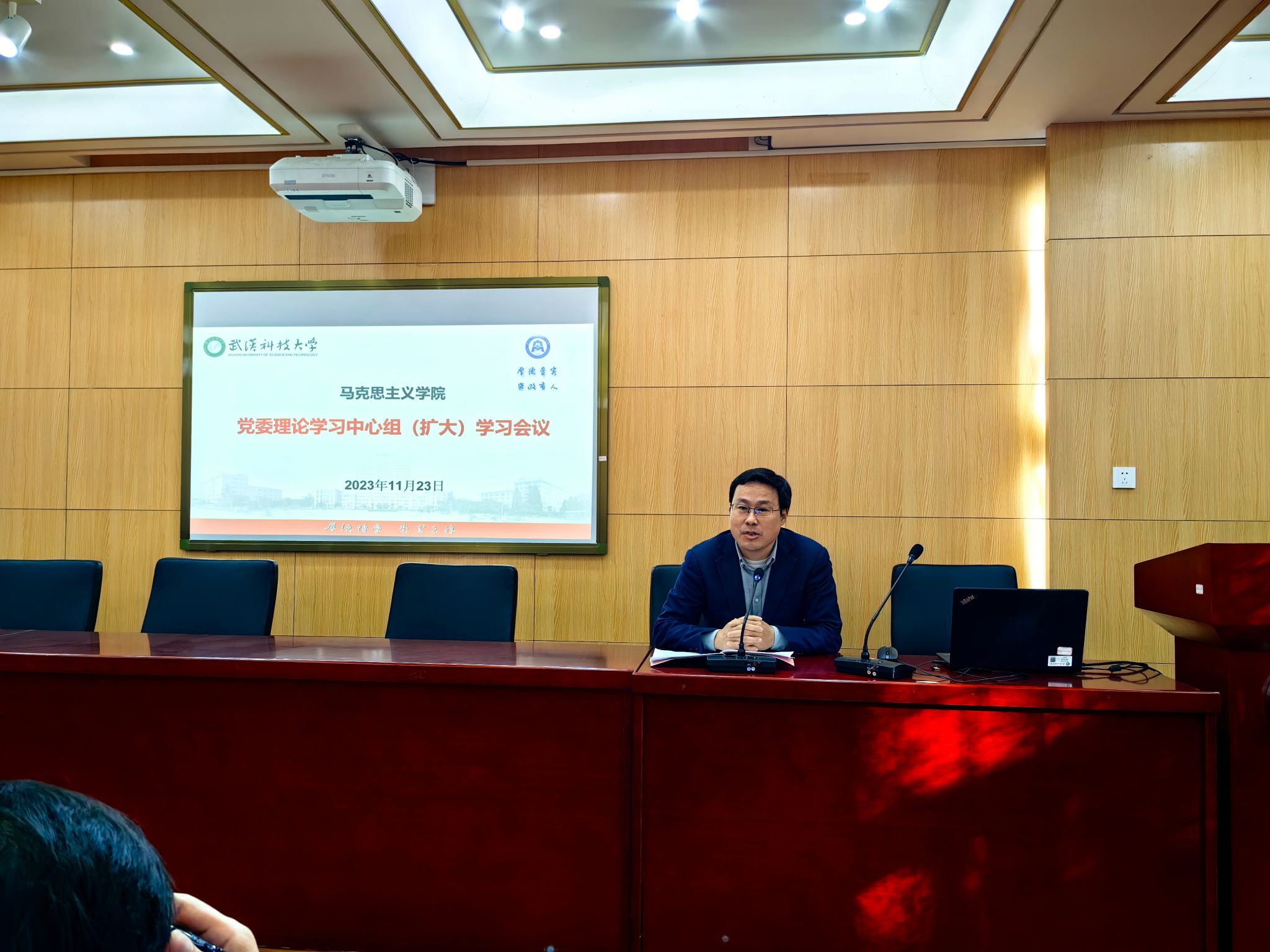 本网讯(通讯员郭海沙)11月23日下午,william威廉中文在教四楼41101报告厅举行2023年党委理论学习中心组(扩大)第九次学习。党委书记唐忠义主持会议并讲话,学院全体党委委员、全院教师参加会议。